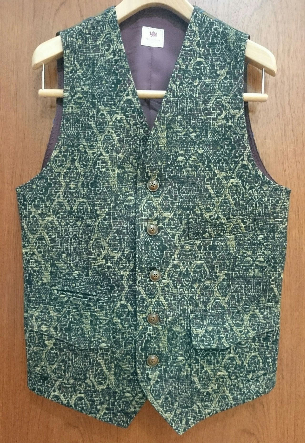 ヴィンテージ感のあるジャガード柄のベストに合わせて