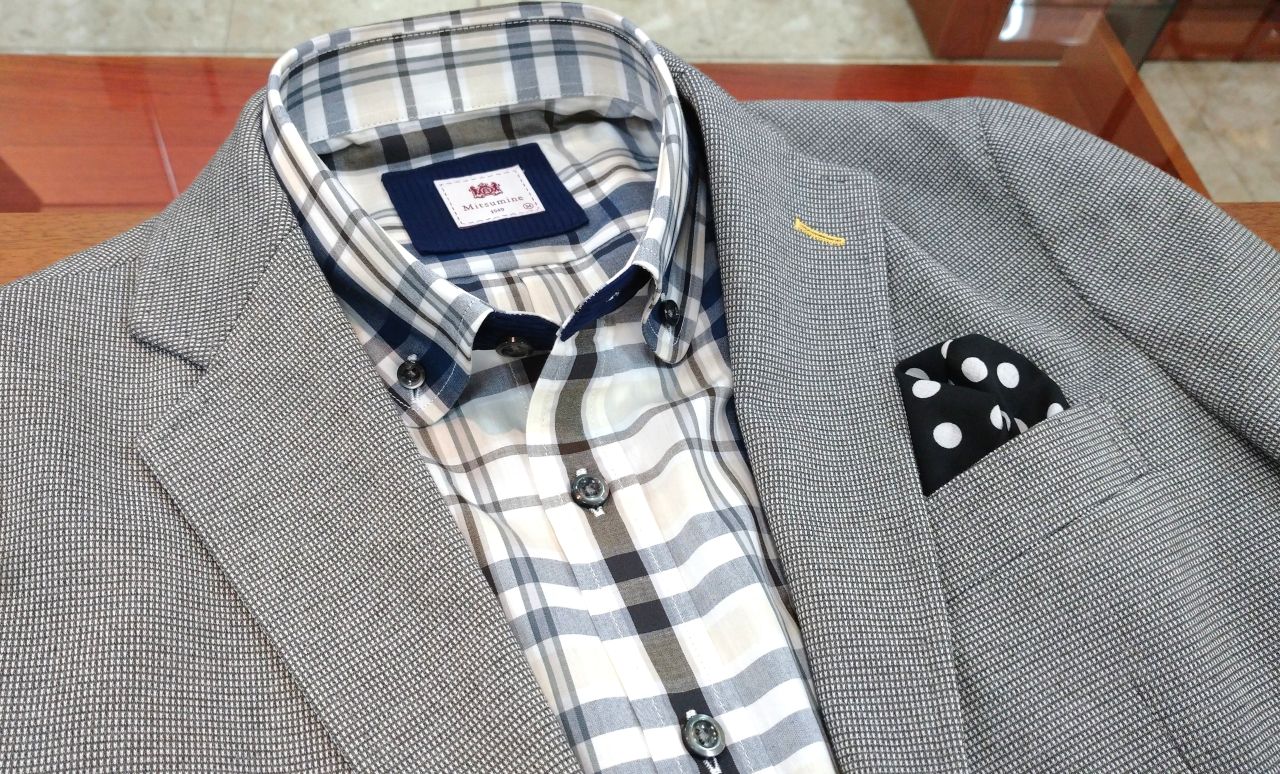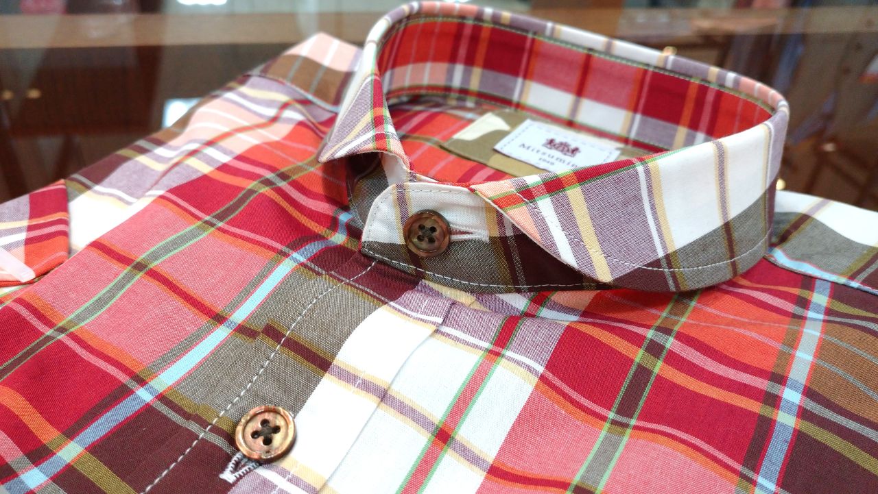 マドラスチェック ショールカラー シャツ