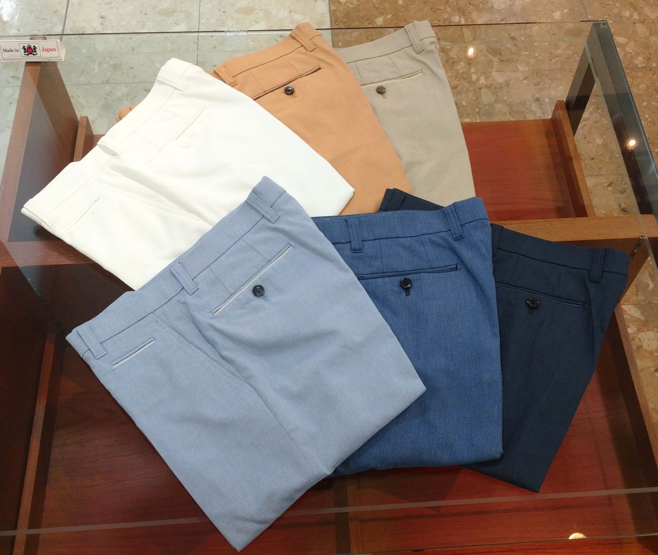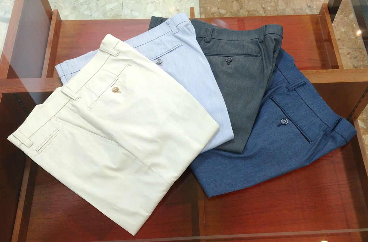 他にも、機能素材を使ったカジュアルスラックスが