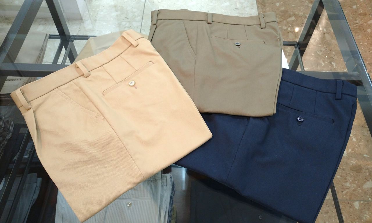 高密度でハリのあるクールマックス素材を使用したパンツです♪(ワンプリーツ仕様)