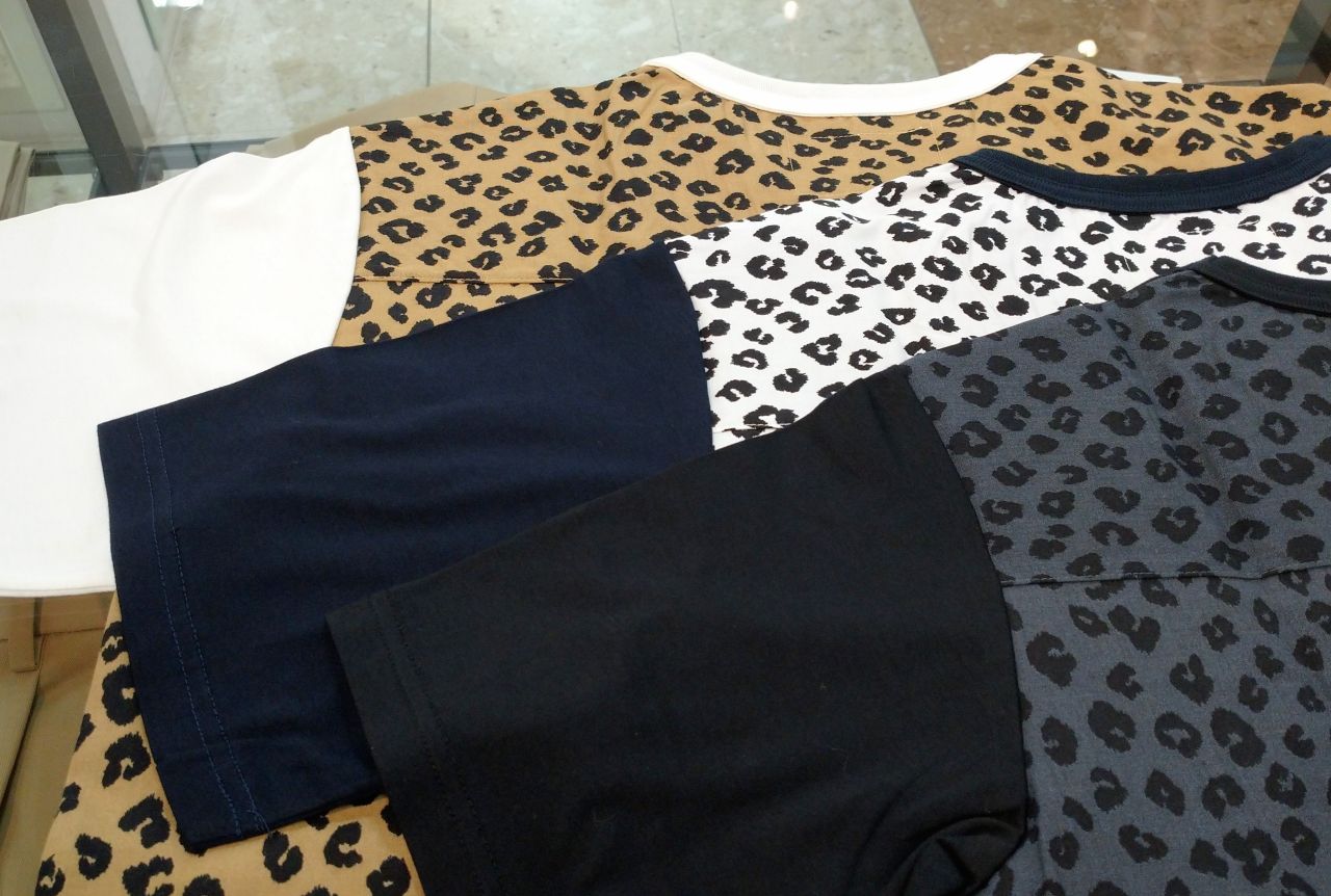 胸ポケットと背中がヒョウ柄のプリント生地で切替えになったTシャツです♪