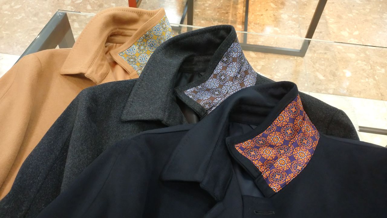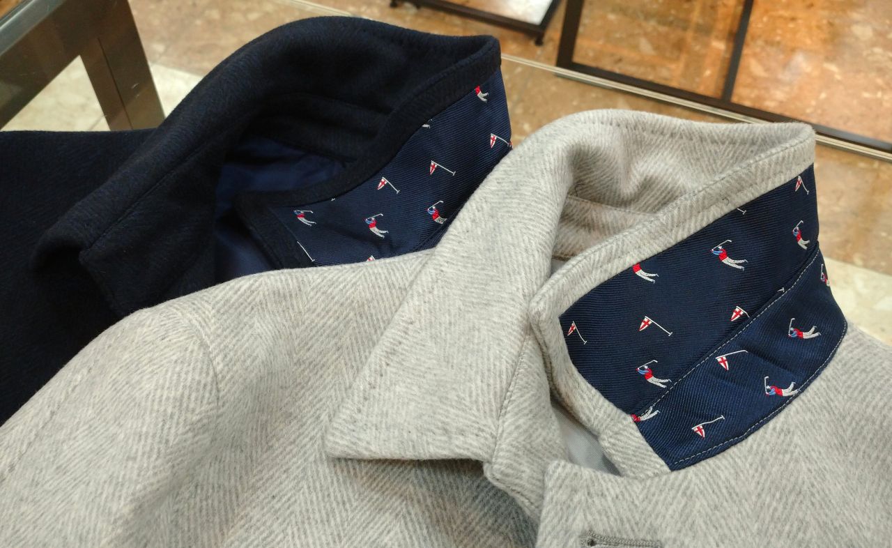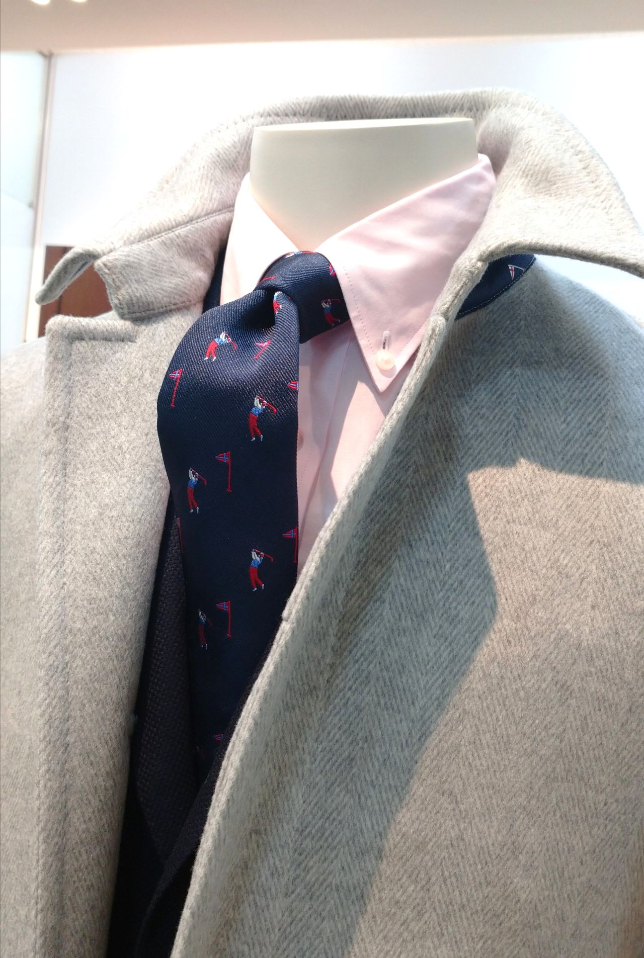 コートの襟裏とお揃いのネクタイを合わせています♪