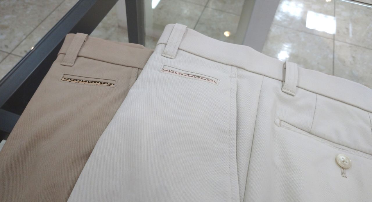 毎シーズン定番としてお作りしていたスラックスタイプのツイル無地パンツが、