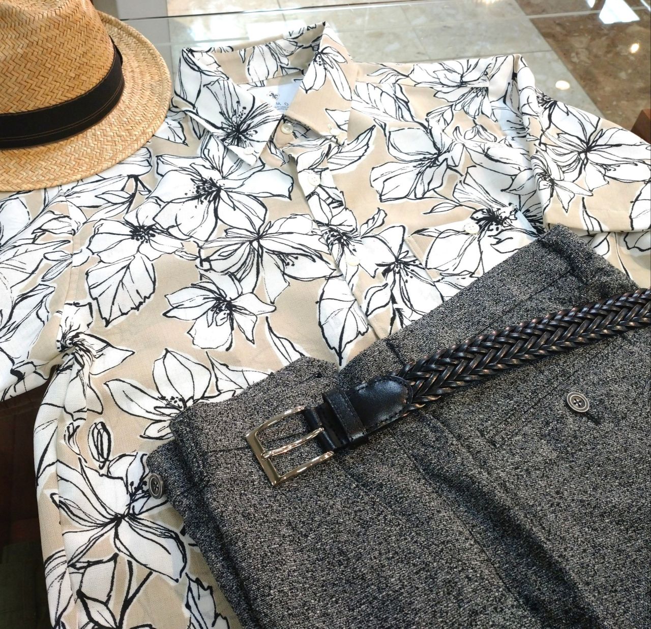 大き目のフラワープリントが大人っぽい雰囲気の一枚です。