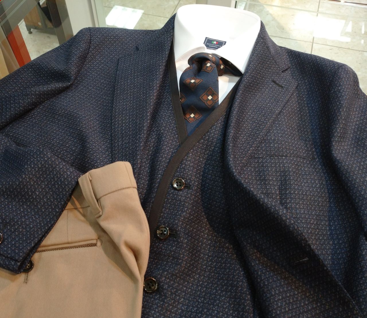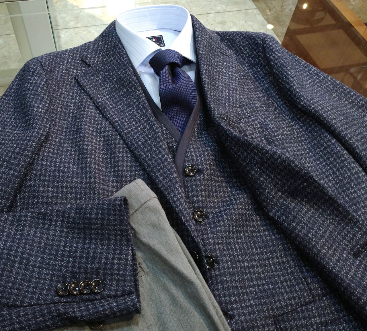本日も、入荷したばかりのジャケットとベストを使った