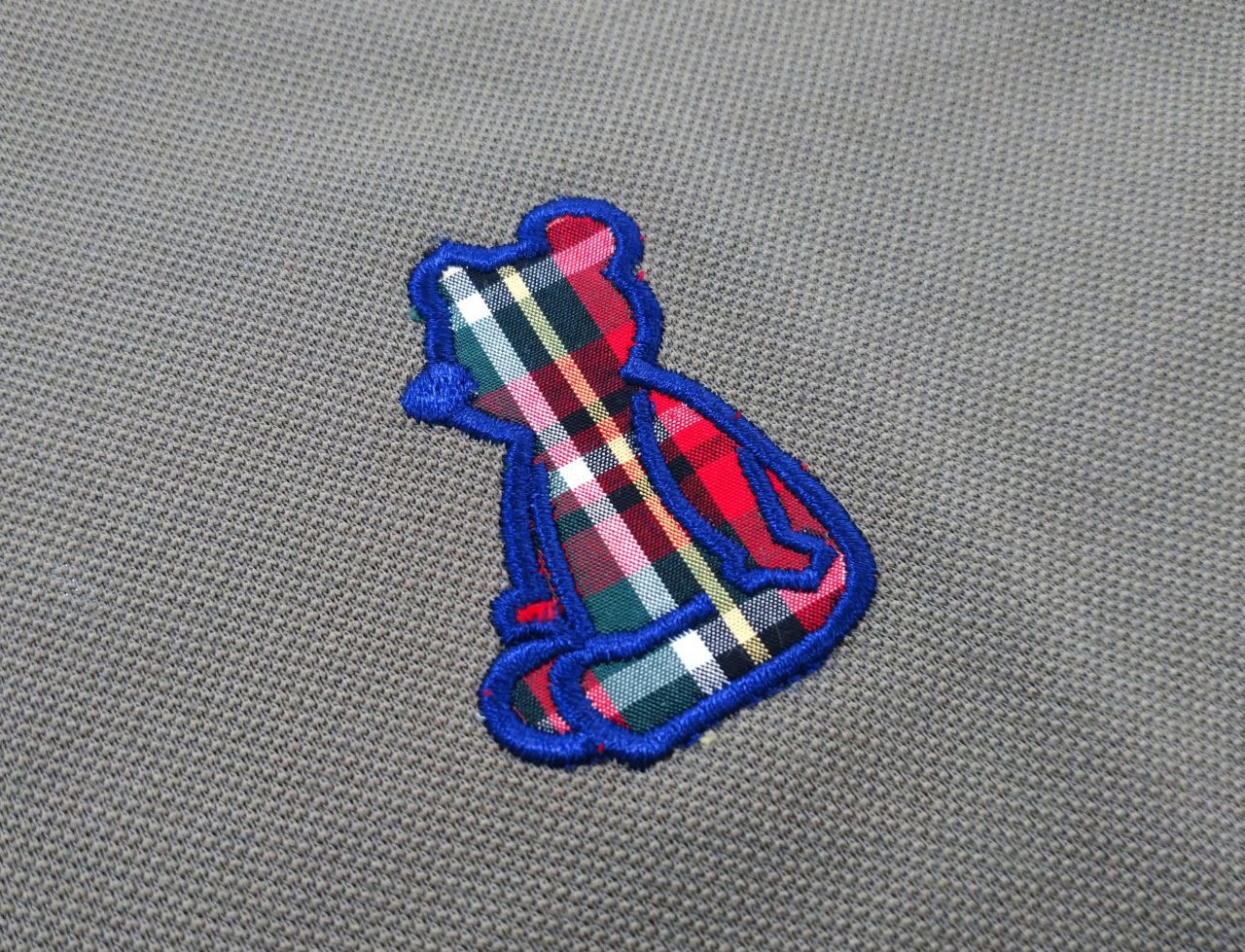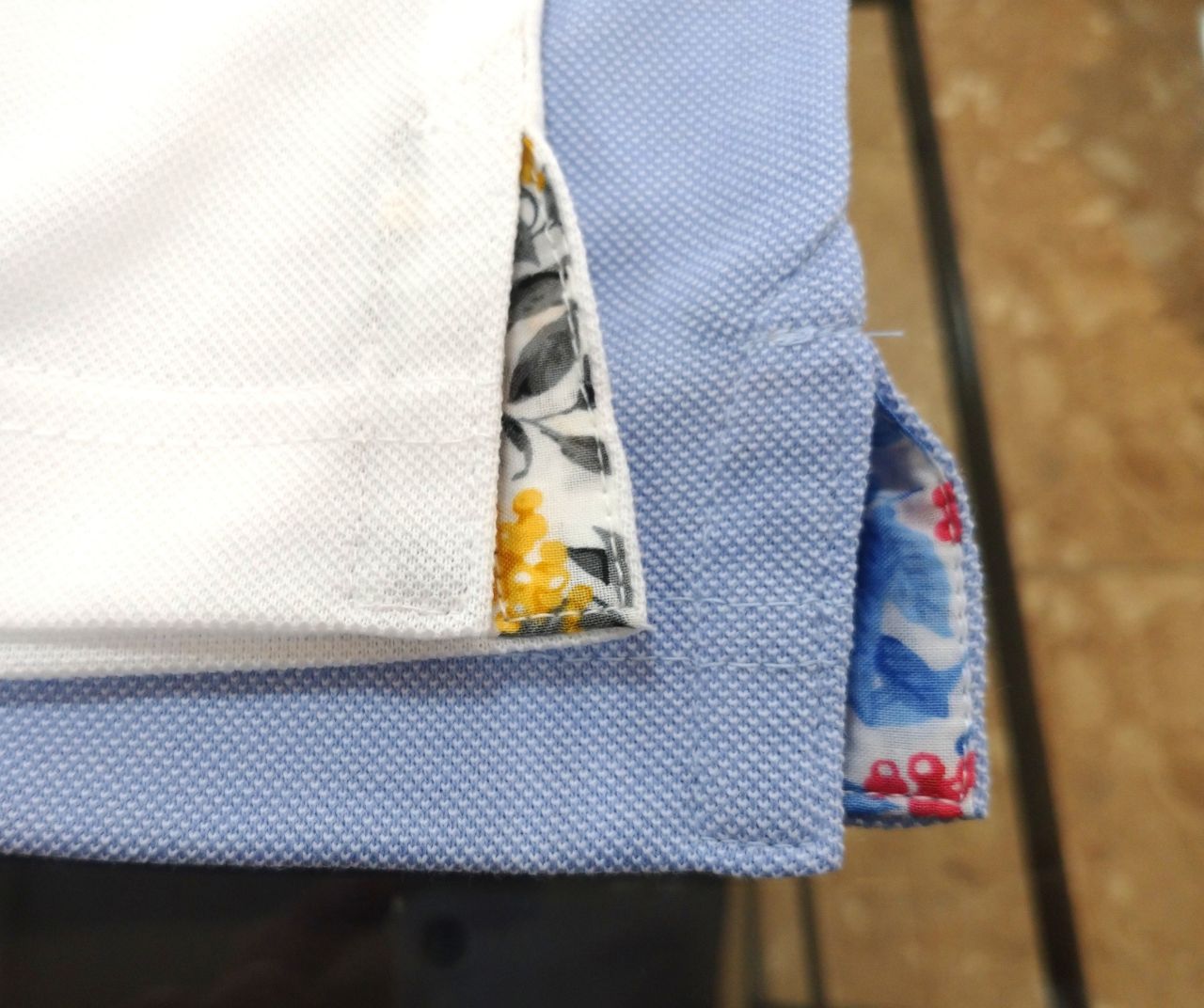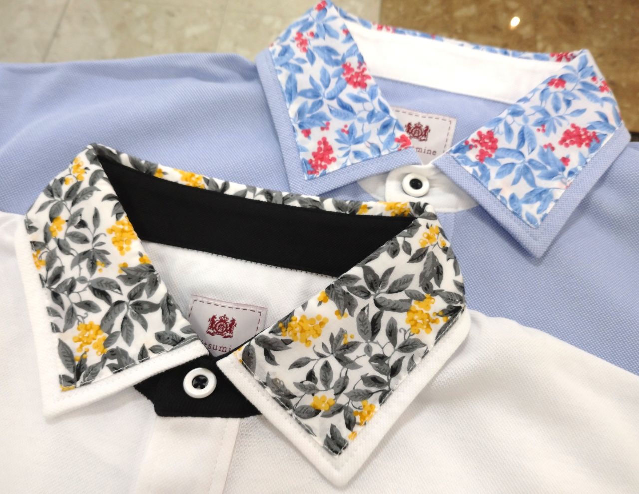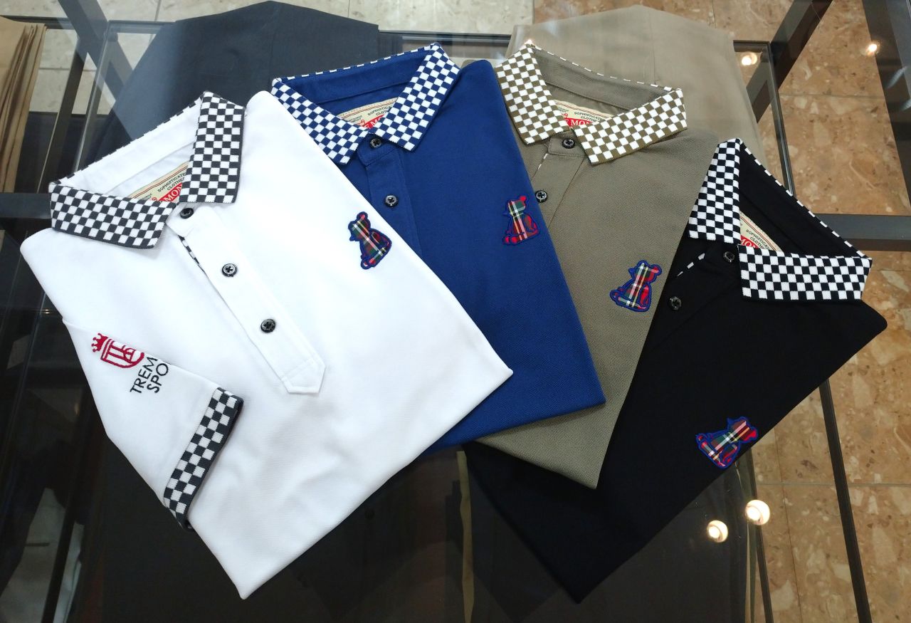 襟や袖口のチェック柄が印象的なポロシャツです。