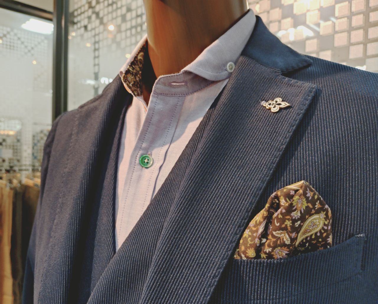 ポケットチーフとして柄を見せると◎