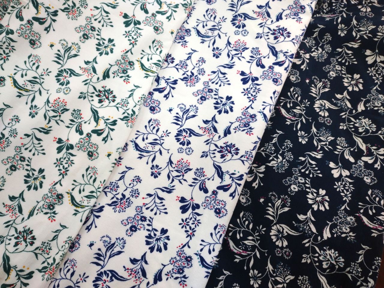 コーデュロイにイラストタッチの花柄をプリントした生地を使用しています。