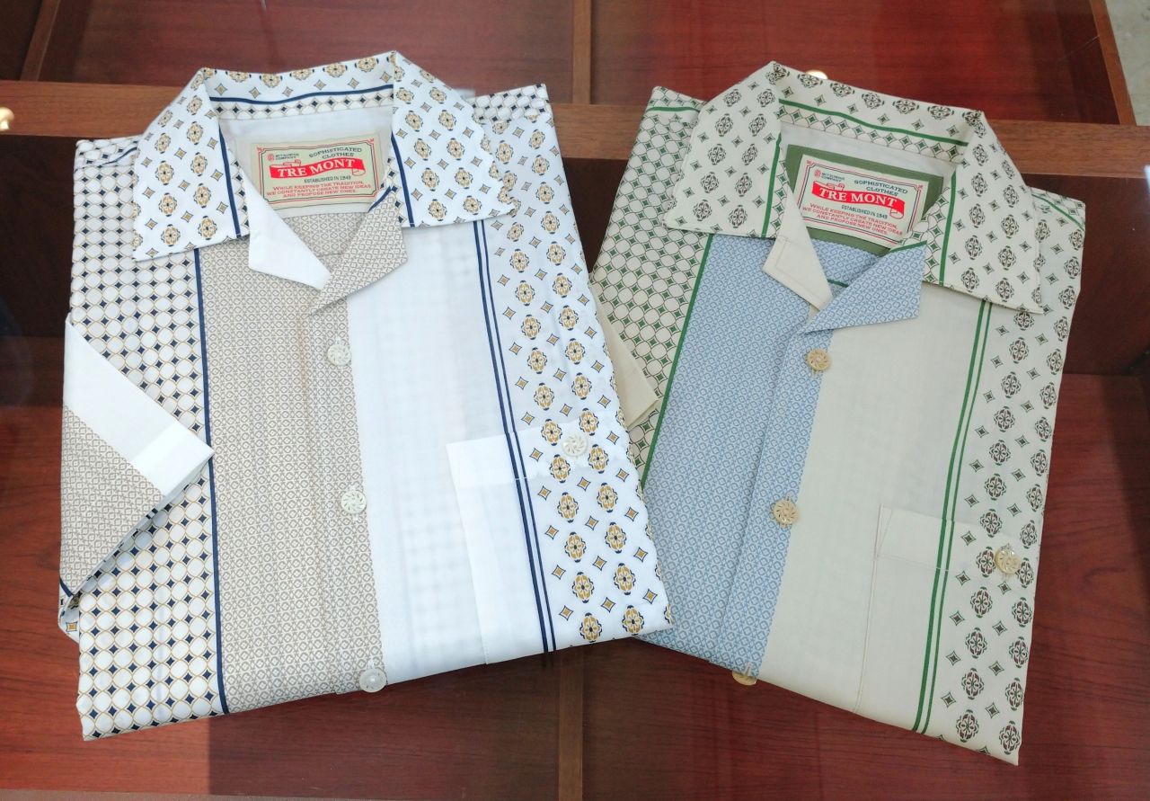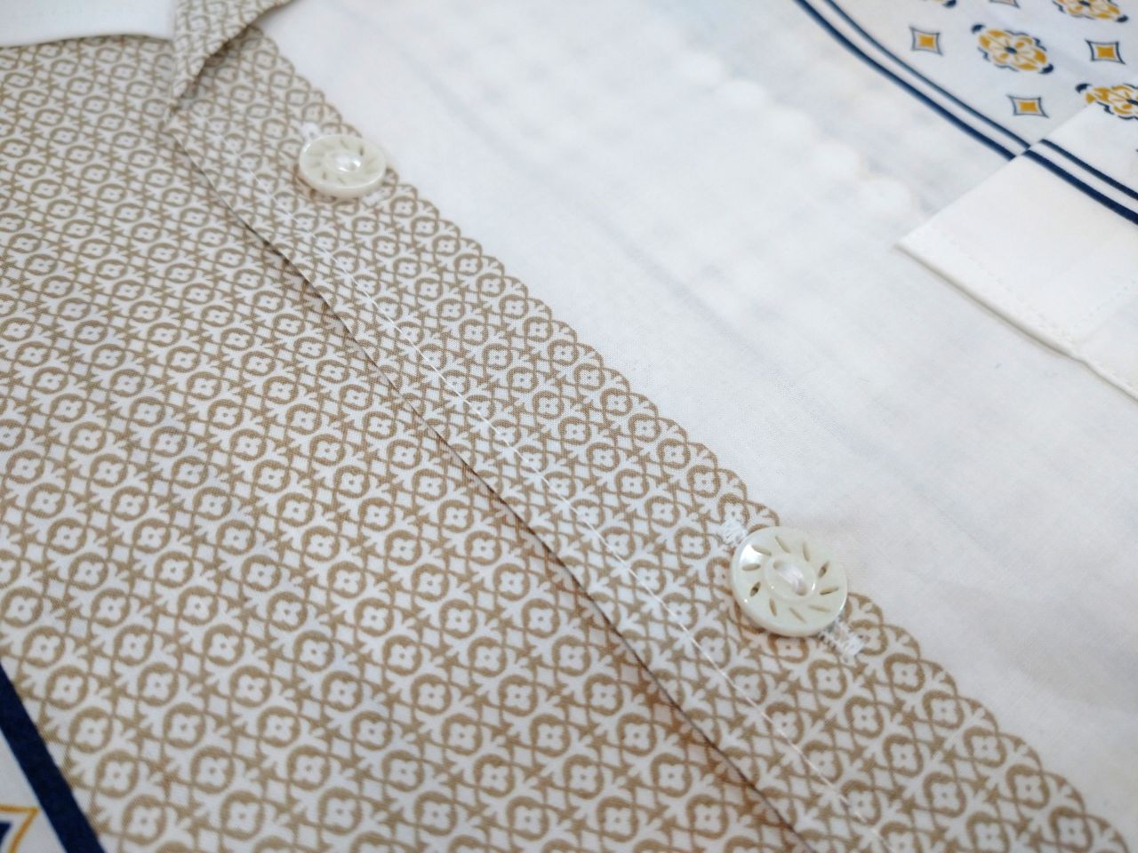 こちらは様々な幾何学模様が切り替えられたプリント素材を使用したオープンカラーシャツです♪