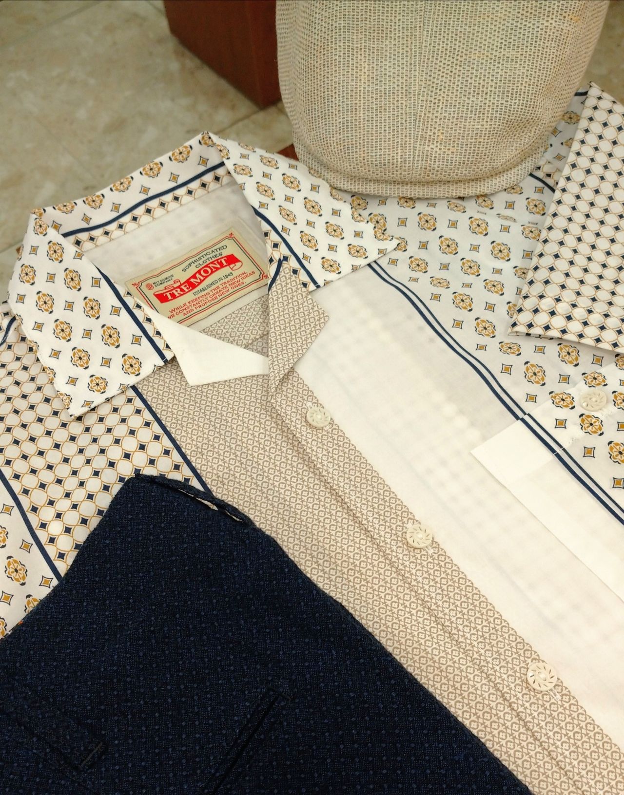TRE MONT マルチ幾何学プリントオープンカラーシャツ