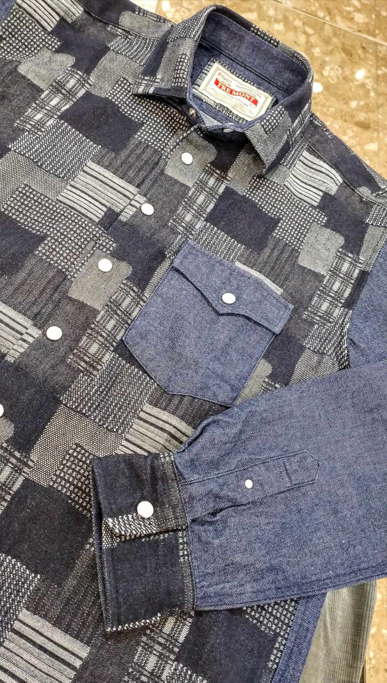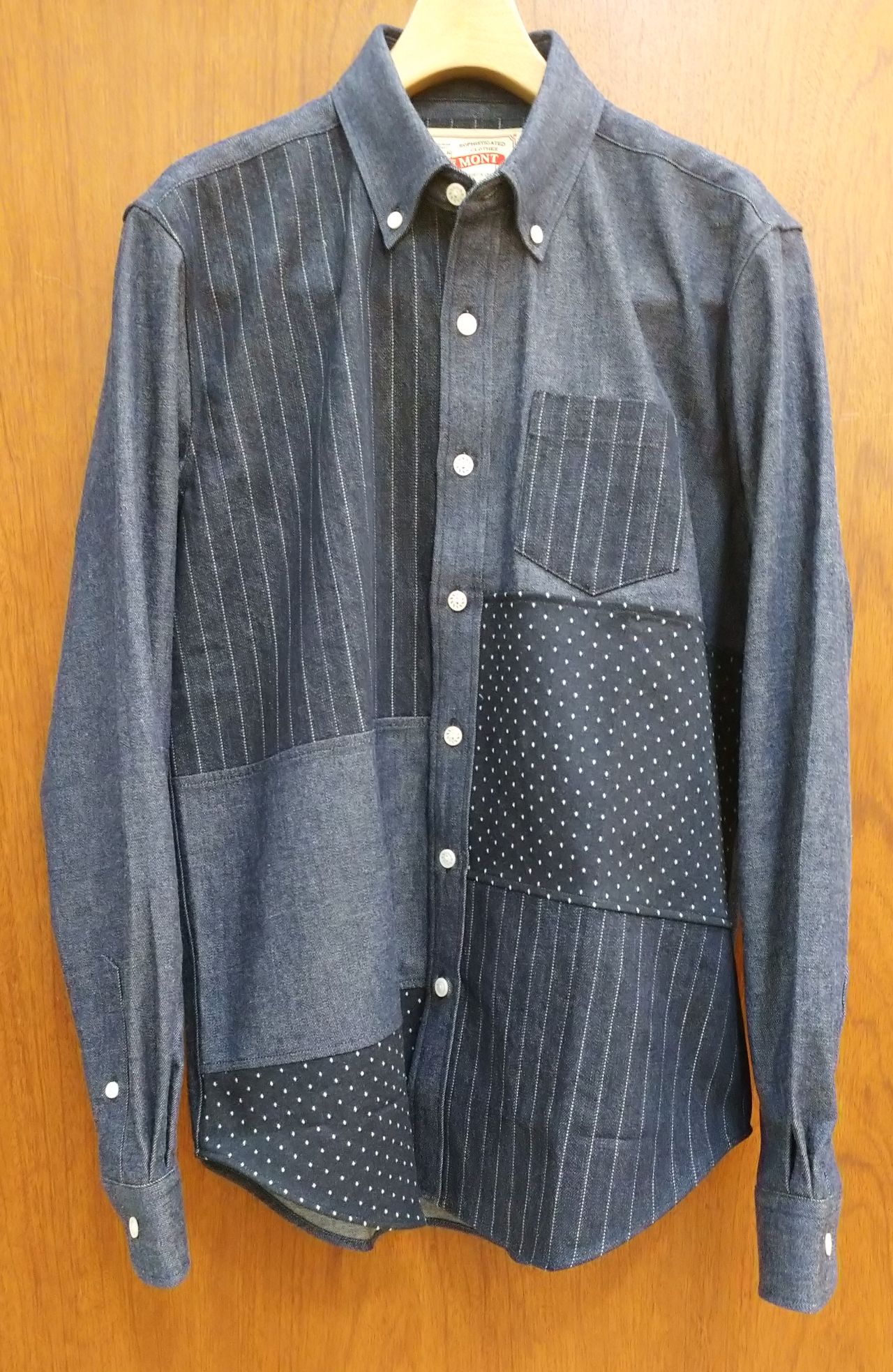 3種類のデニム生地を組み合わせたギミックデザインのデニムシャツです♪