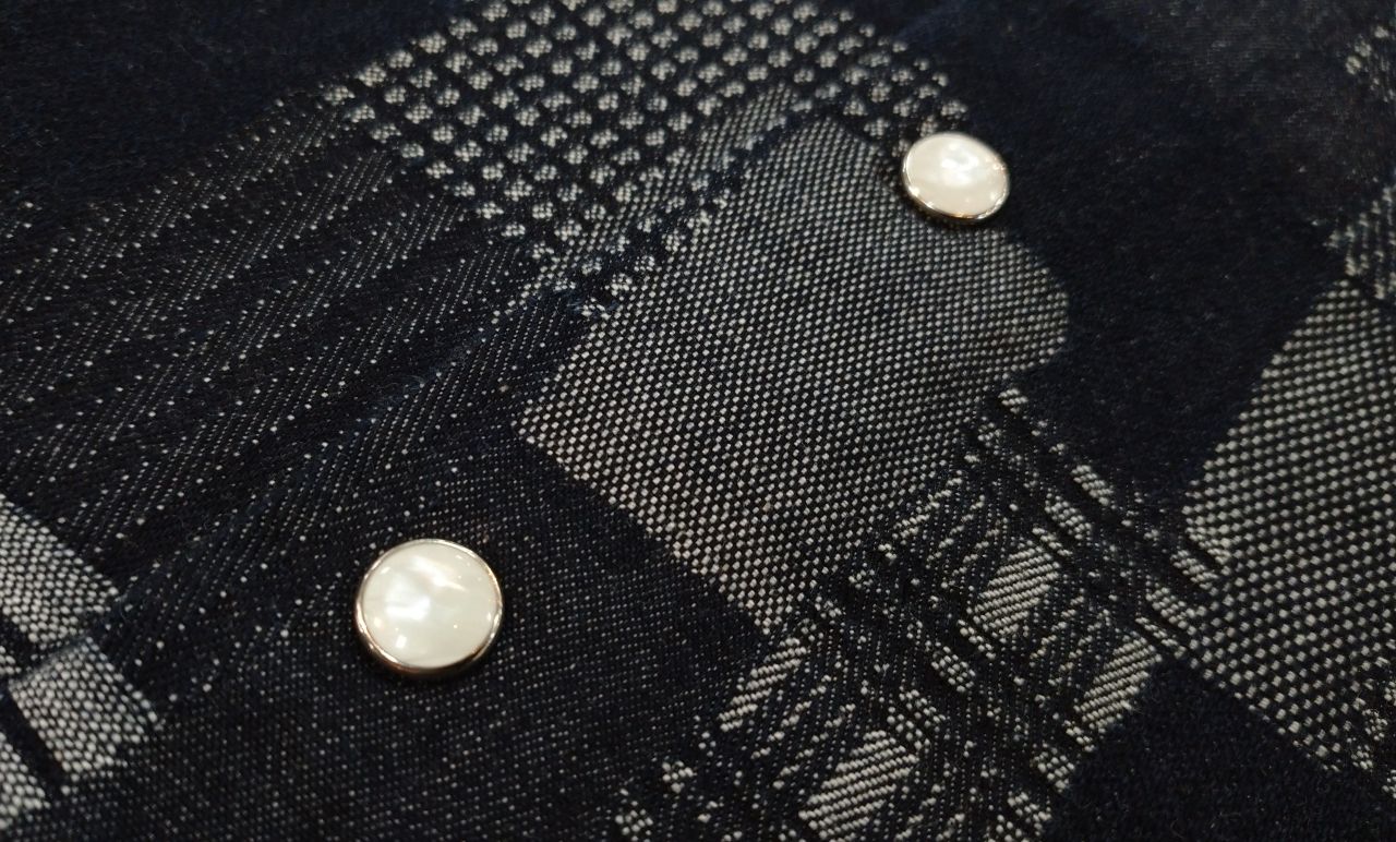 ボタンはべっ甲のようなヴィンテージ感のあるドットボタンを使用しています(^_^)/