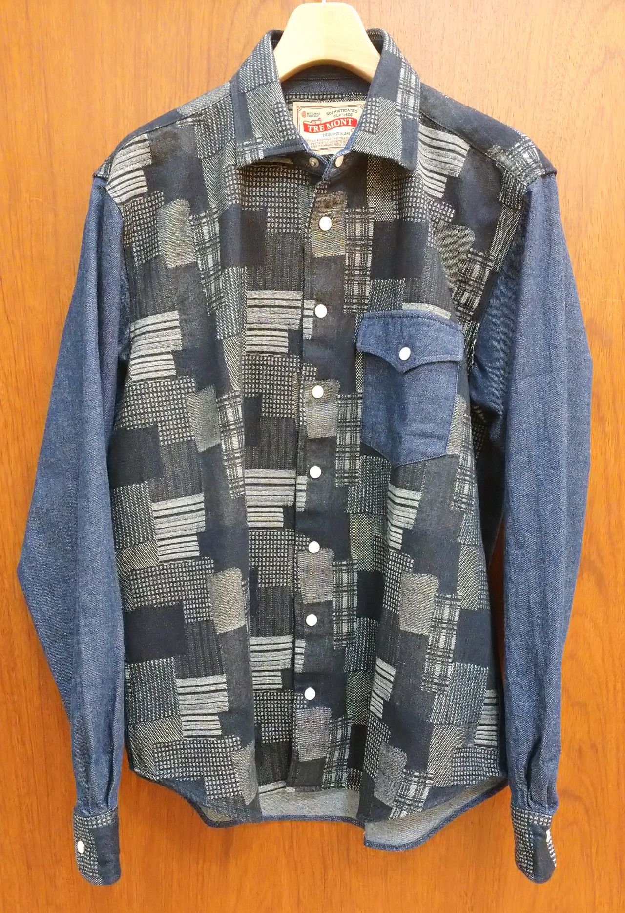 フロントと袖口部分にジャガード素材を使ったデニムシャツです!