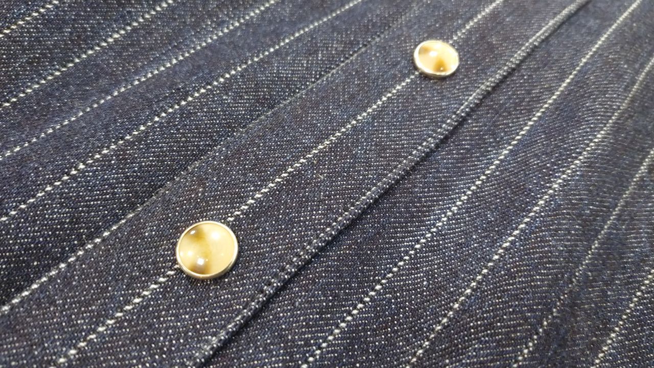 無地とドット柄のデニムはワンウォッシュ加工がされた生地、ストライプはバイオ加工がされた生地を使用しています。