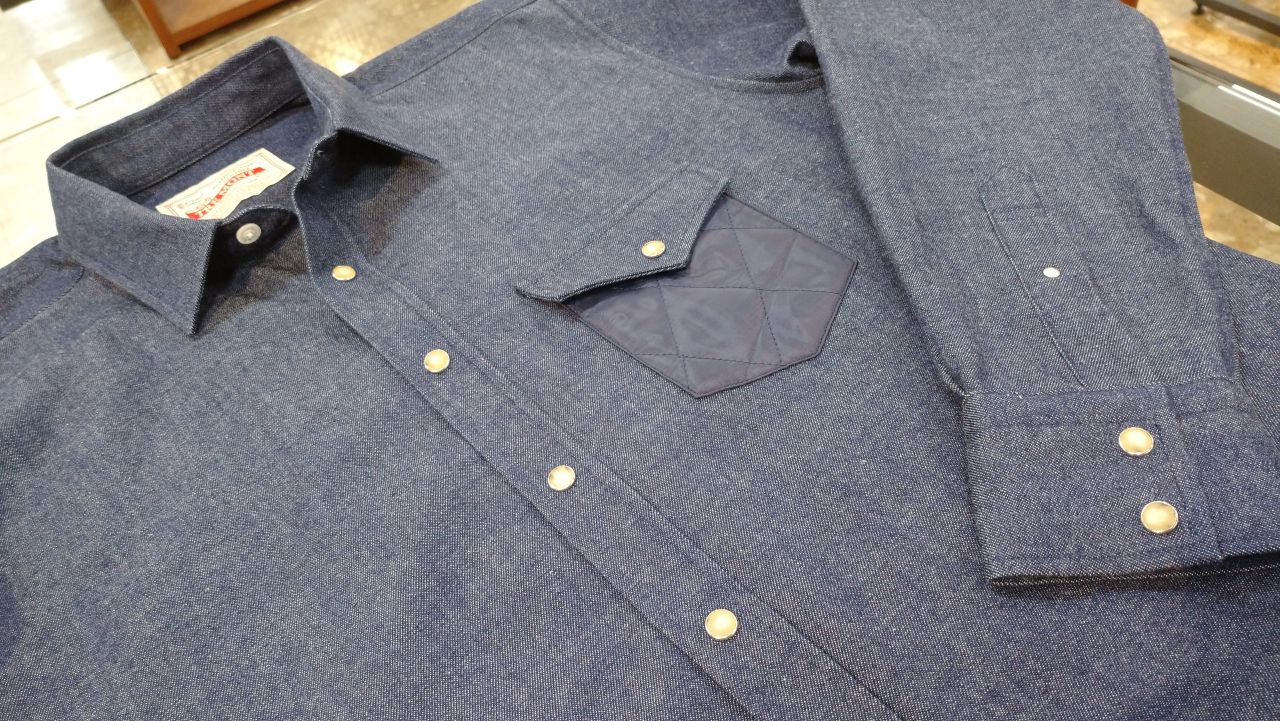 後ろがキルティング素材になっているデザイン性の高いデニムシャツですヽ(^o^)丿