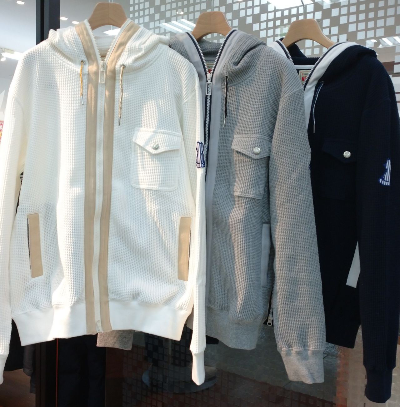 今の季節は、ワッフルパーカーを使った