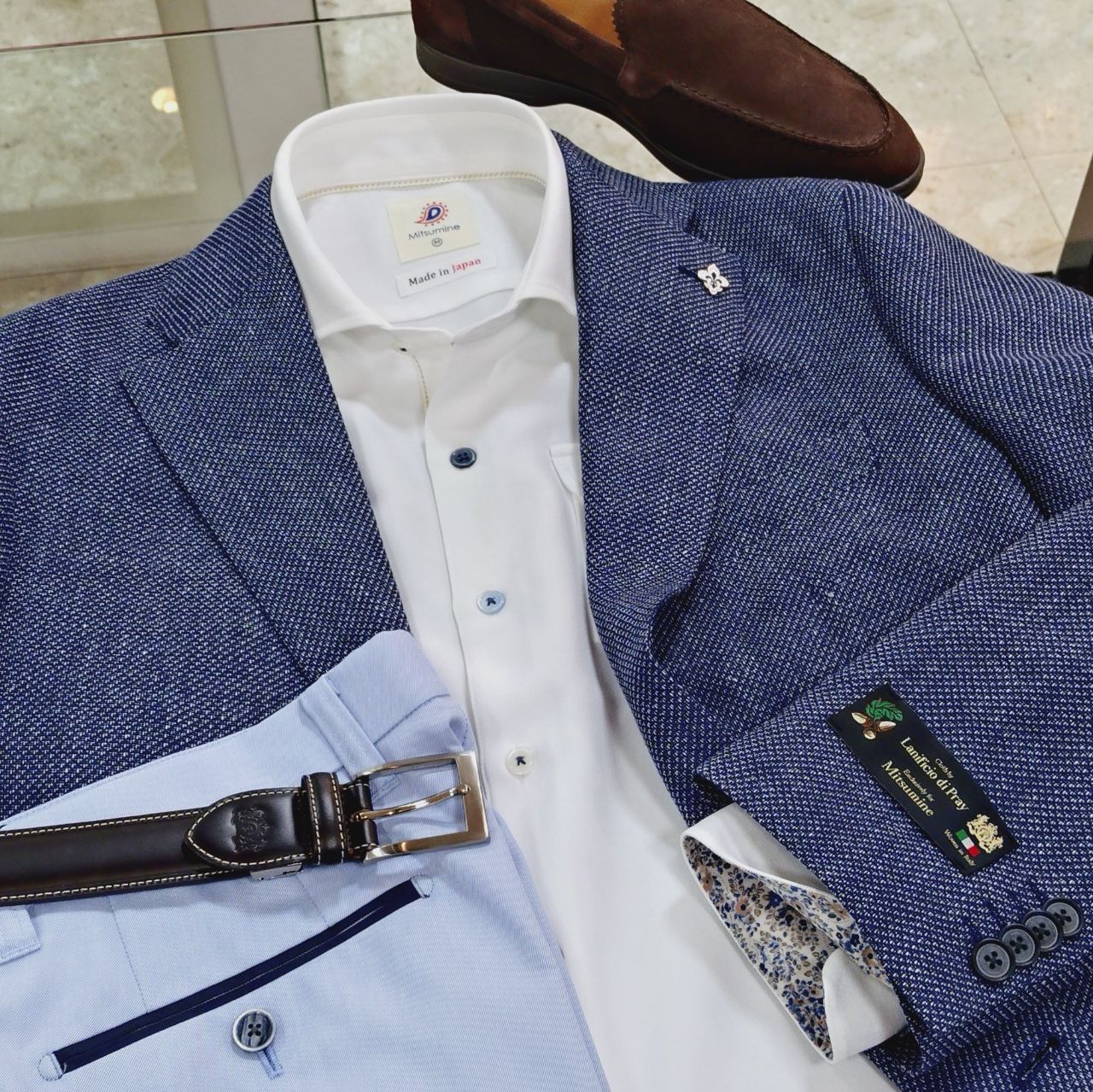 バーズアイ特有のザックリとした生地感が涼し気な一着です。