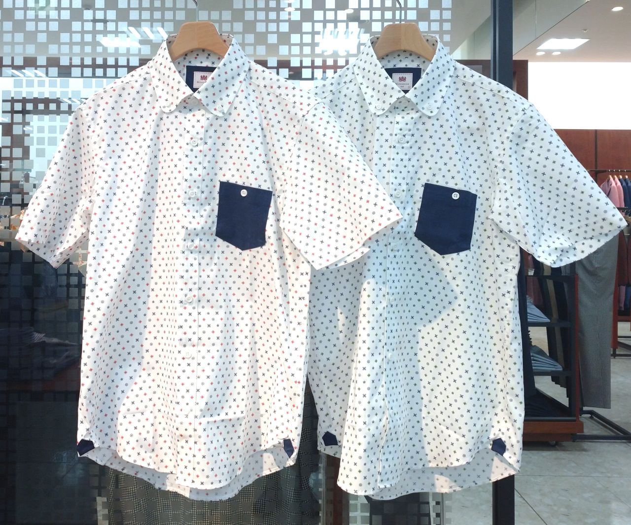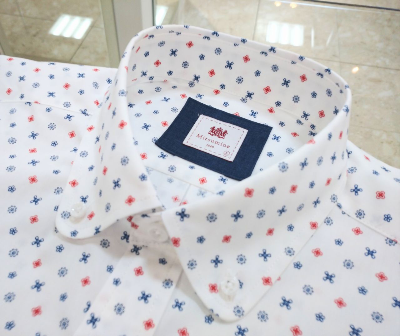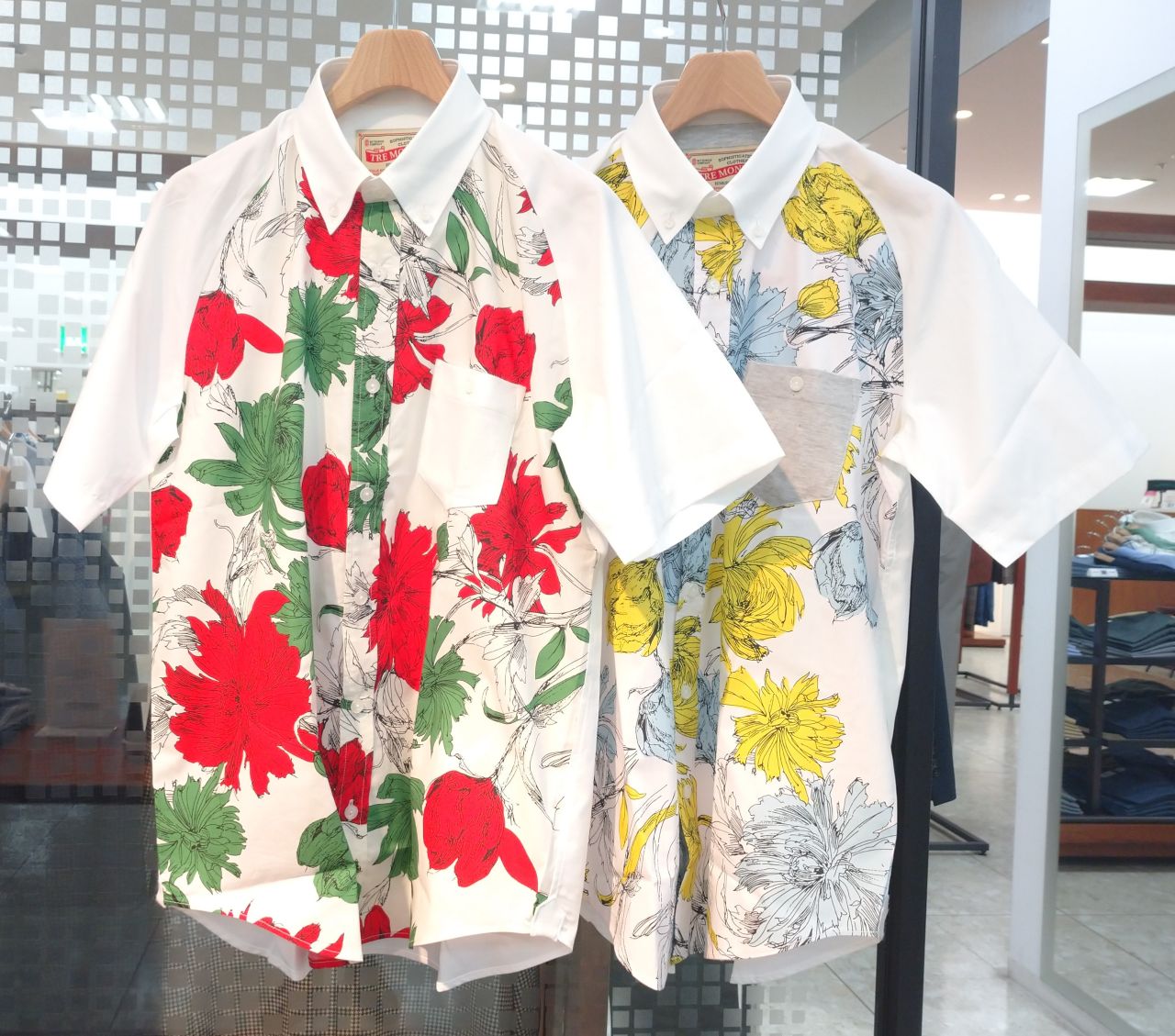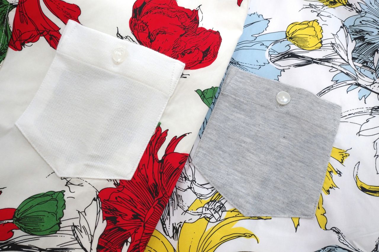 フロント部分の華やかなプリントが特徴のカジュアルシャツです。