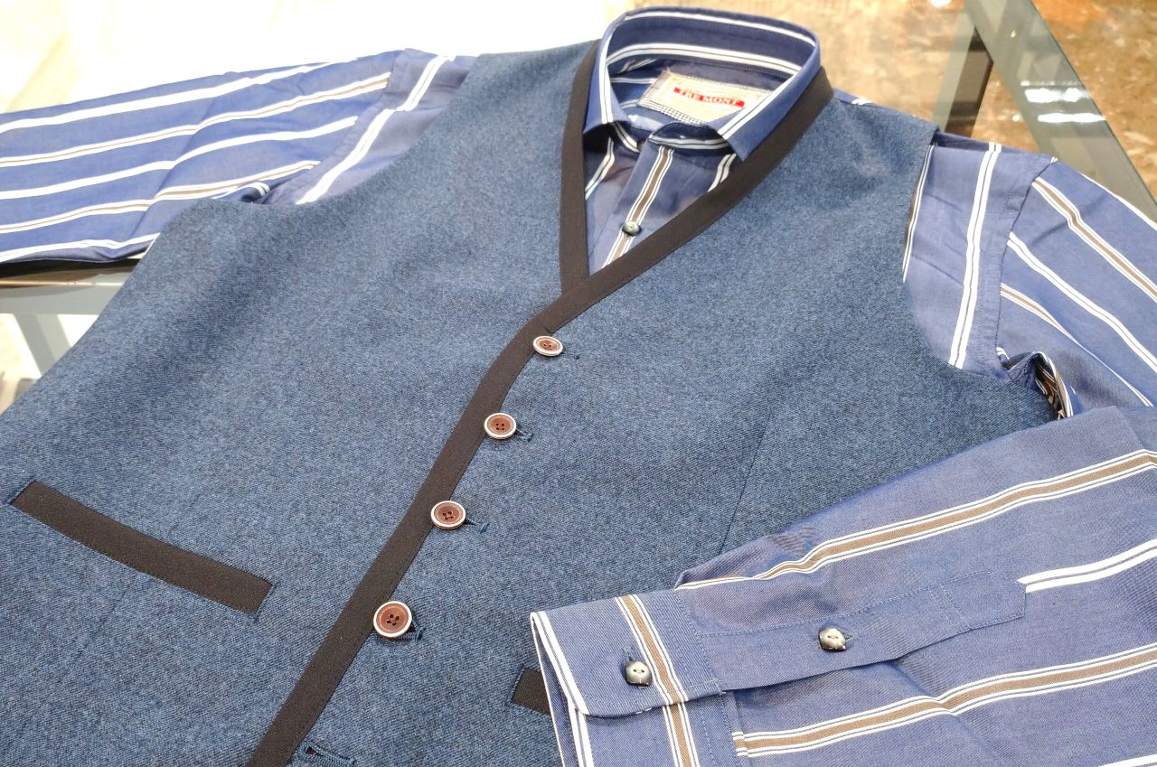 ヘリンボーン無地パイピングベストのダークブルーと合わせ、ワントーンでまとめました☆