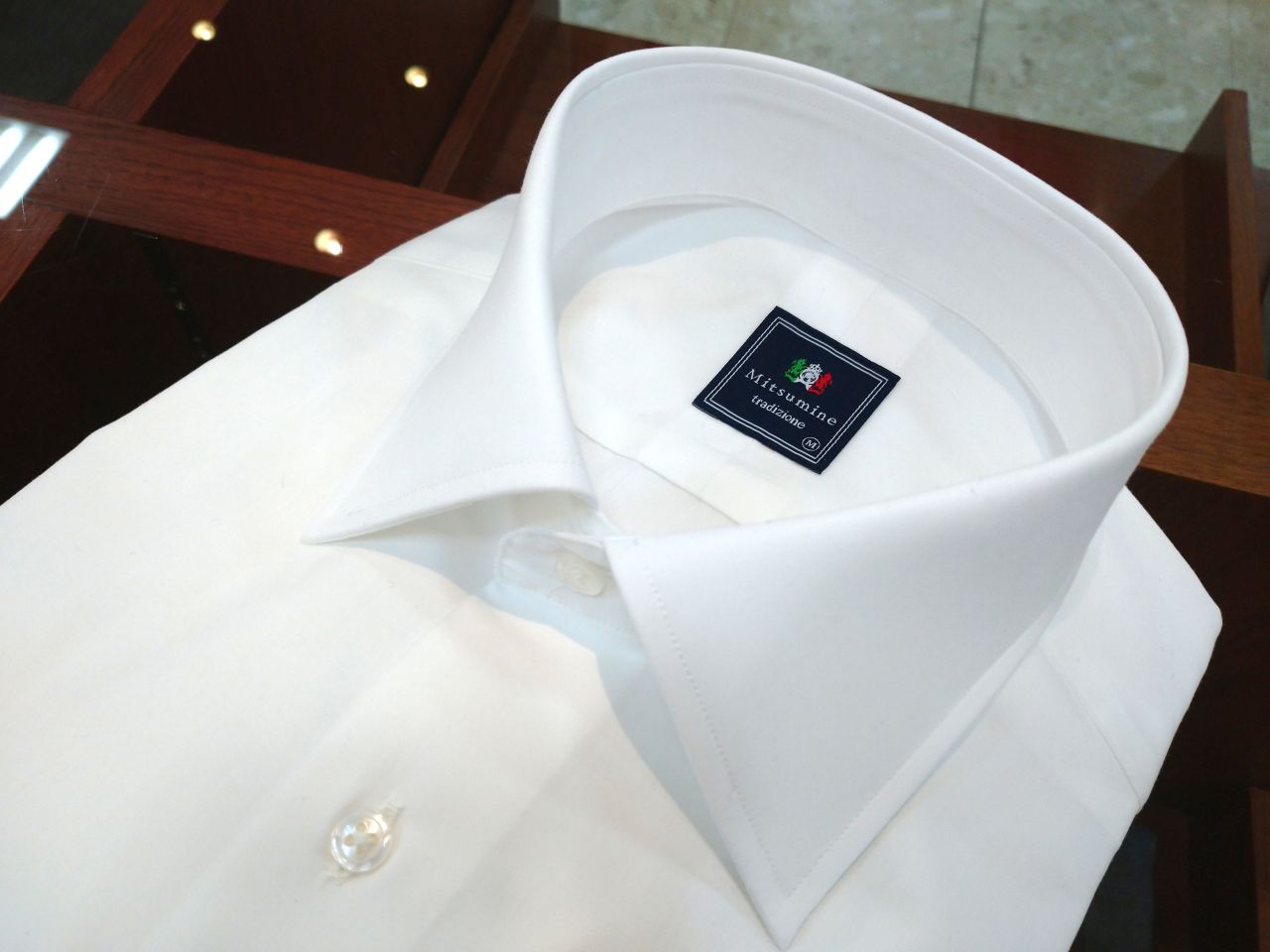 襟はどんなシーンにも馴染むセミワイドカラーです。