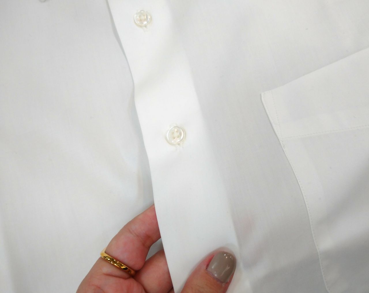 ボタンは、美しい輝きが特徴の天然の貝ボタンを使用しております。