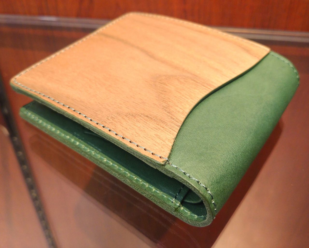 柔らかく曲がる天然木とナチュラルな手染革を絶妙に融合させた