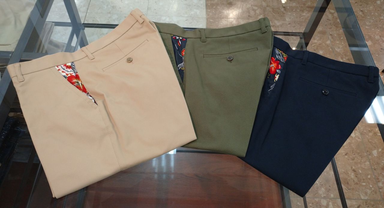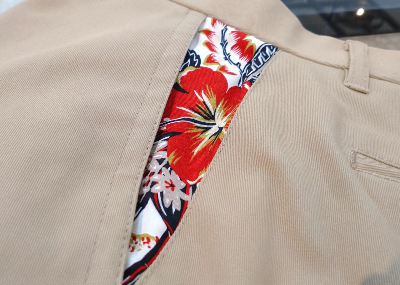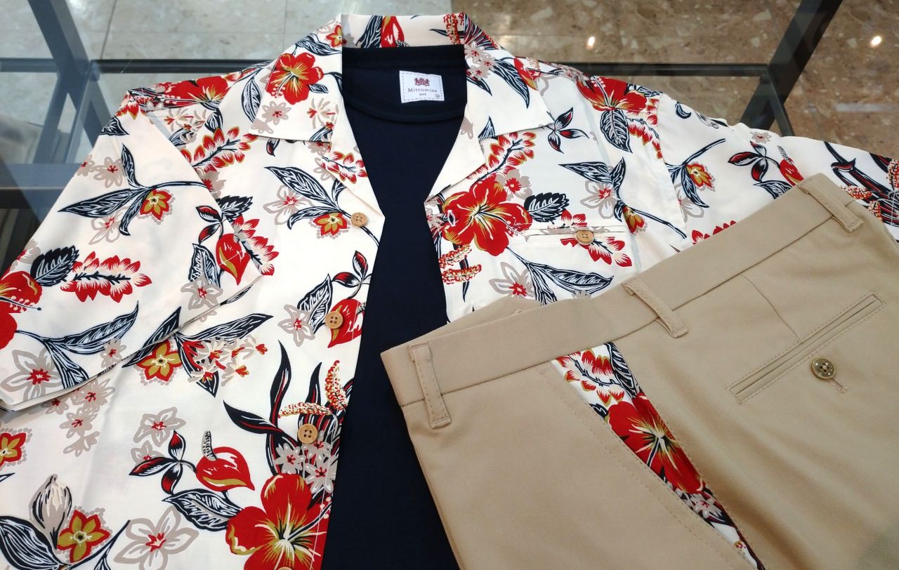 ポケットのアロハ柄がチラッと見えてコーデのポイントになります(*^^*)