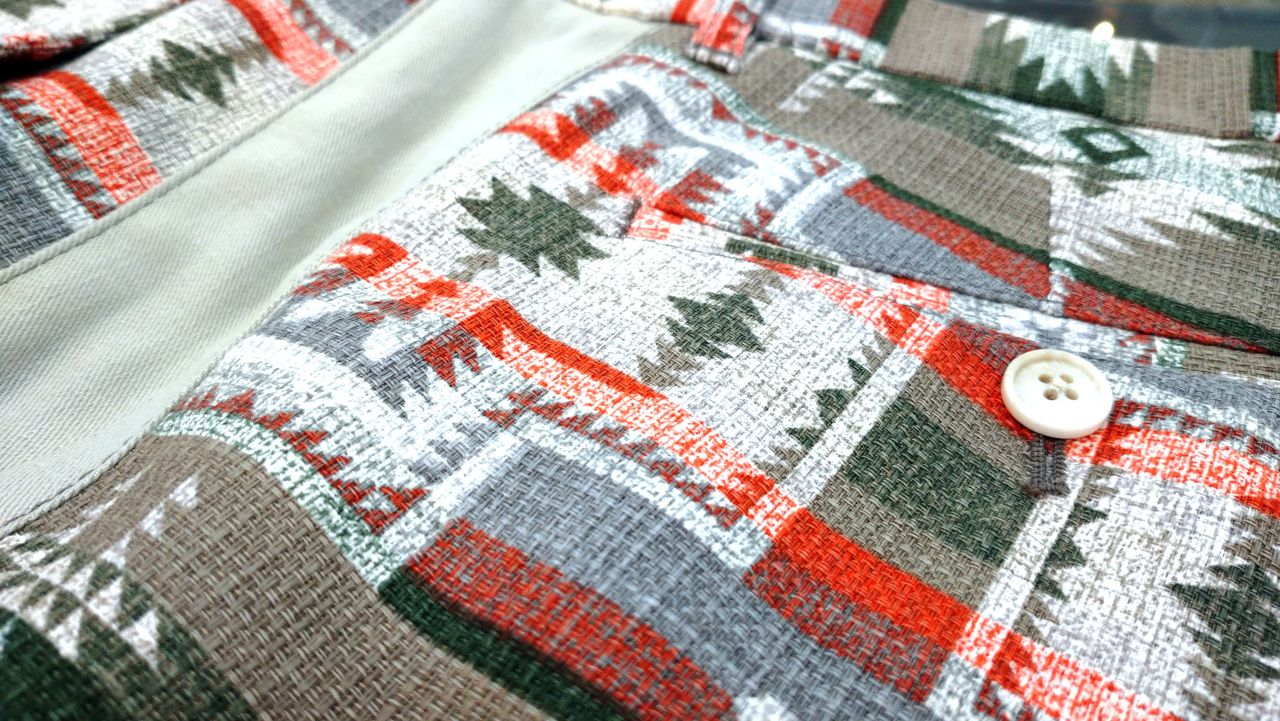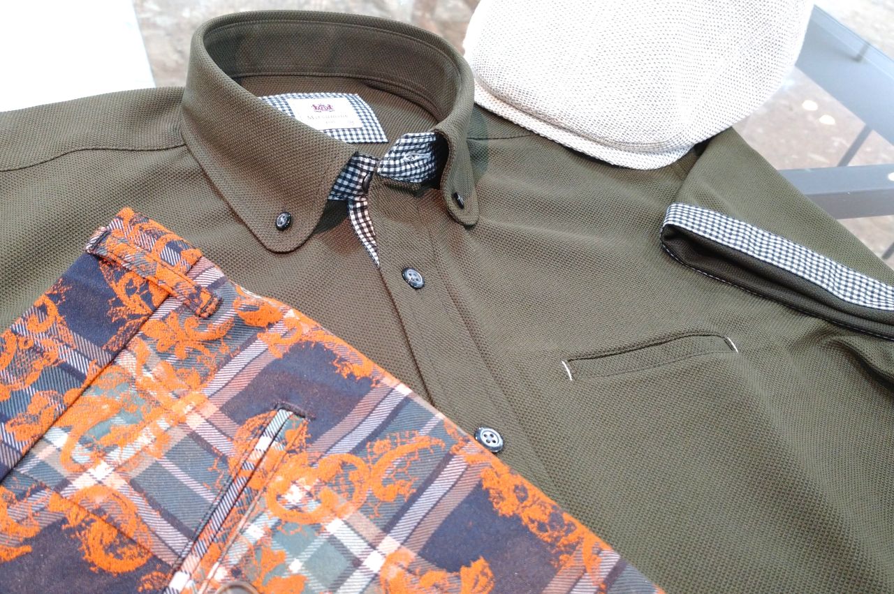 ショーツに使われている別布と同じ生地のオープンカラーシャツを羽織りとして合わせてみました(^O^)