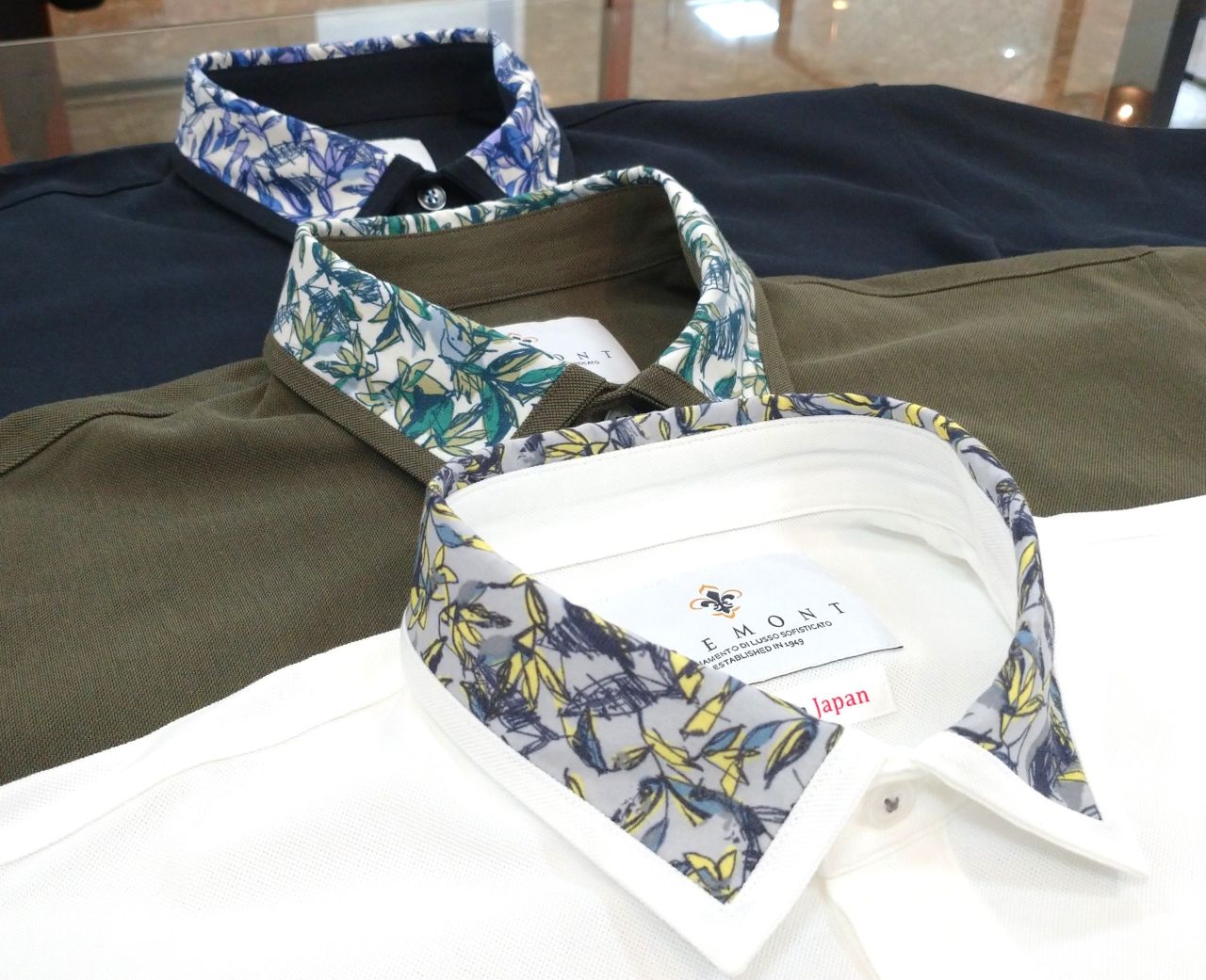 襟プリントポロシャツ