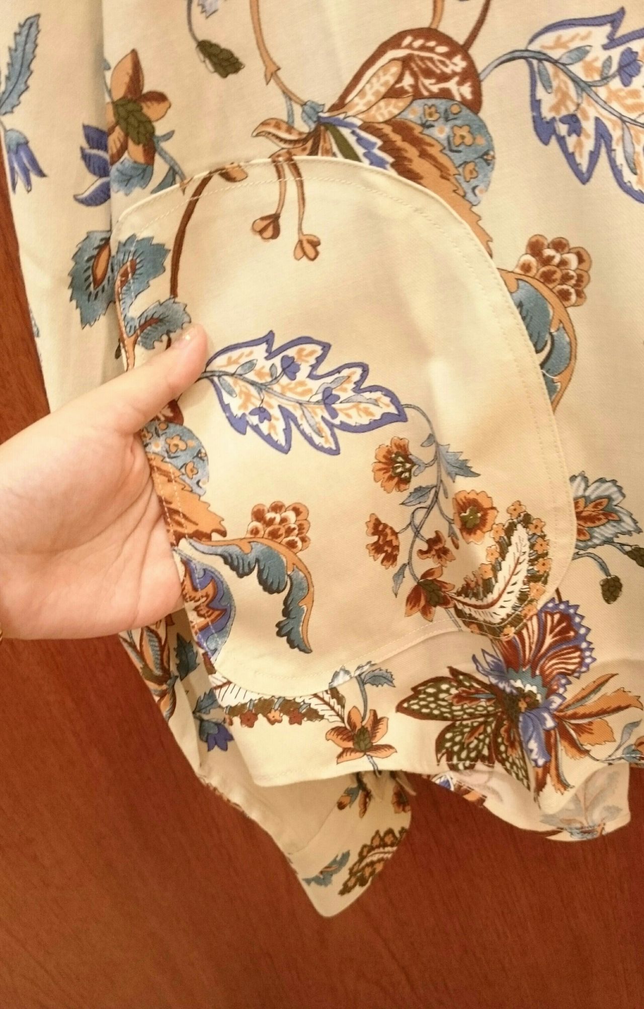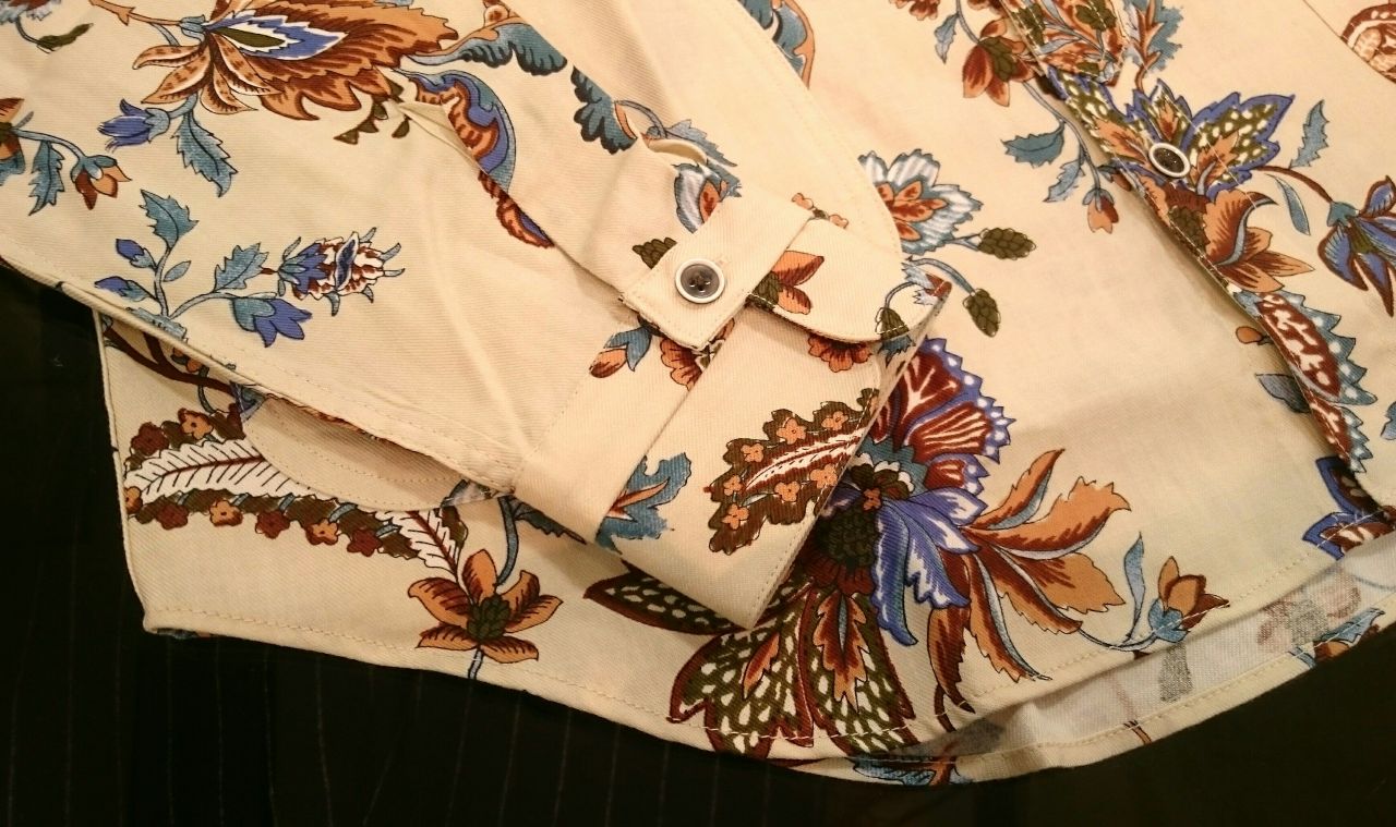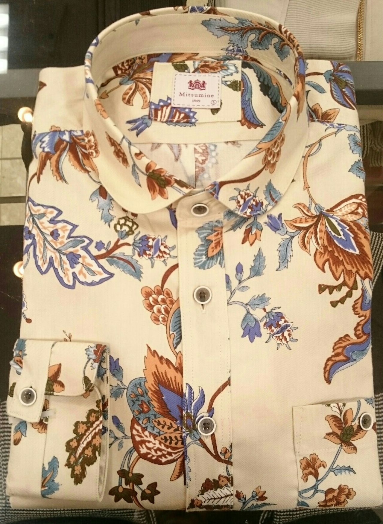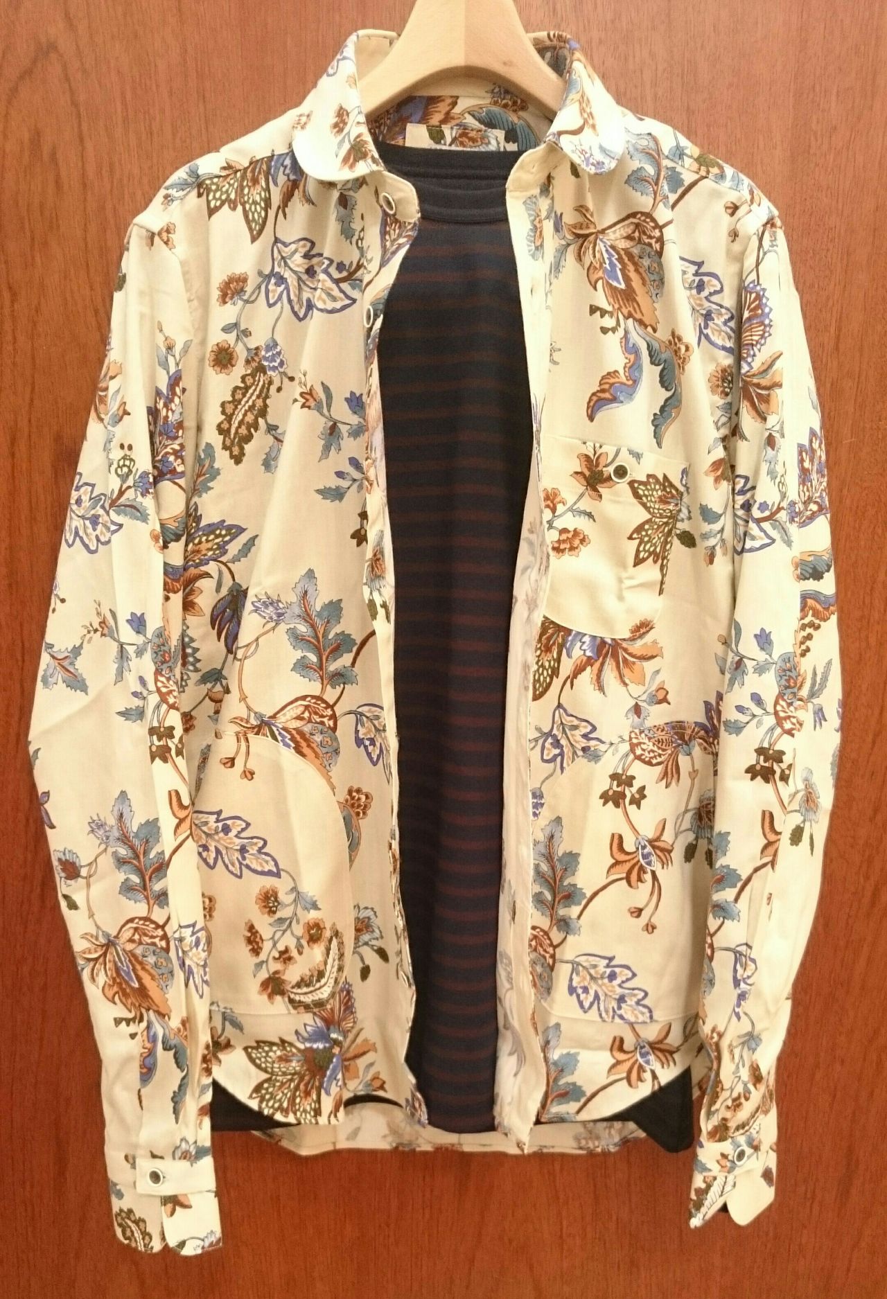 胸ポケット付きのショールカラーが可愛らしい花柄プリントのカジュアルシャツです♪