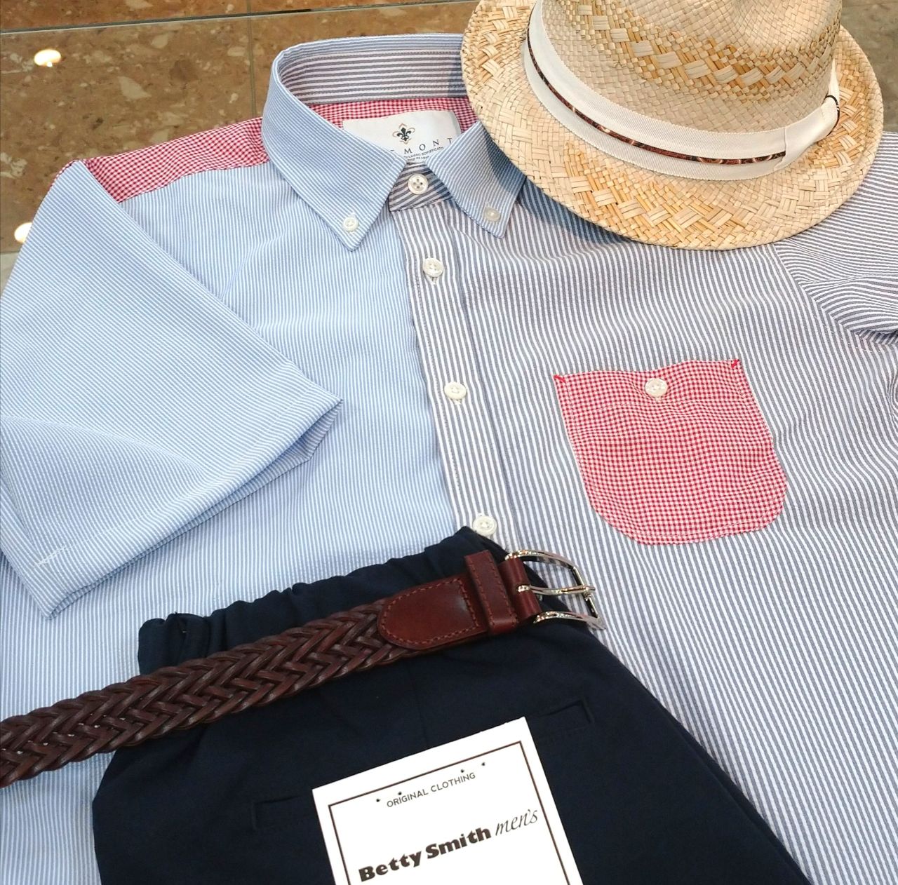 ストライプとチェックを切替えたクレイジーパターンが特徴で、