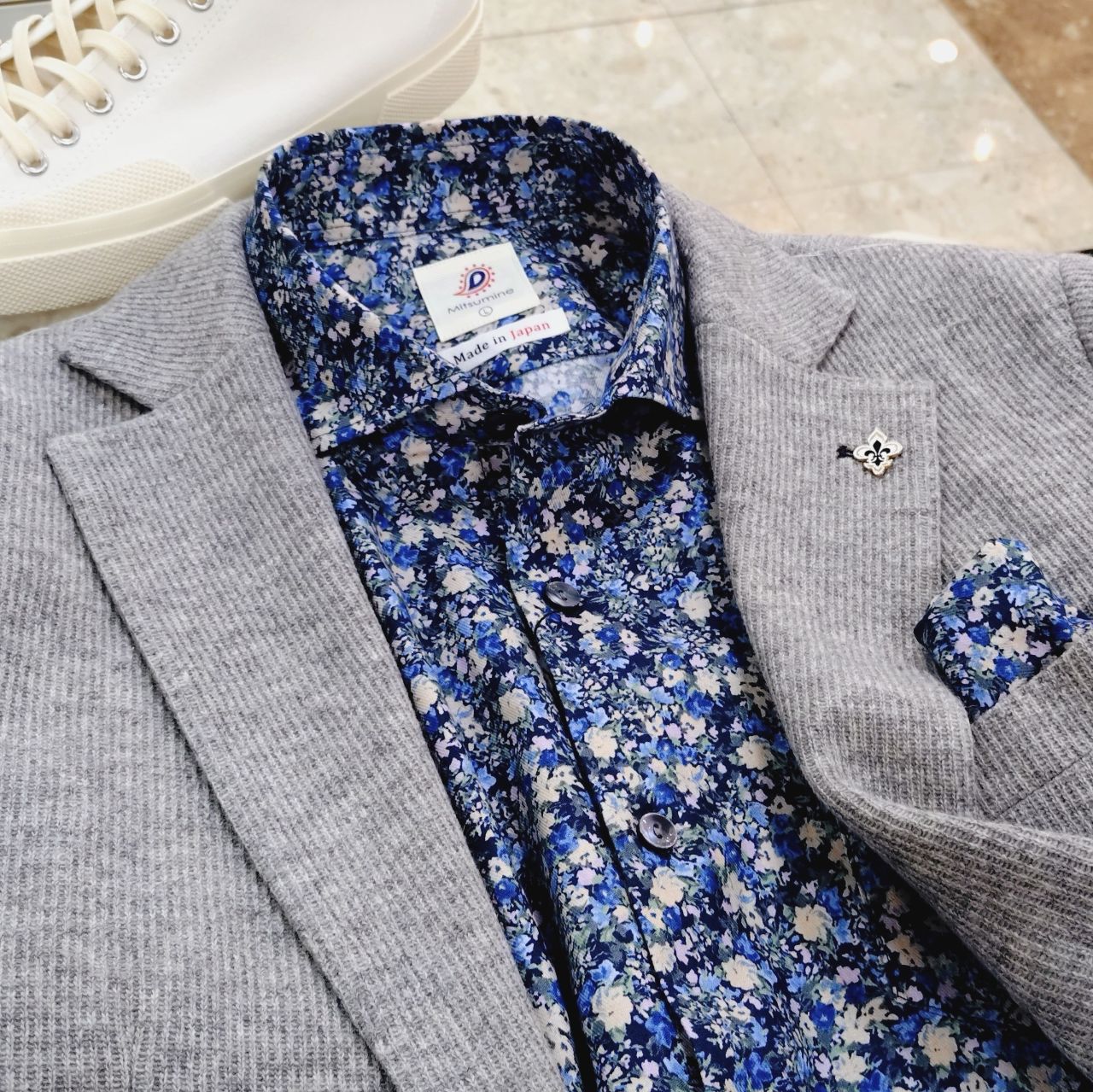 同じ生地のプリントシャツを合わせたり、