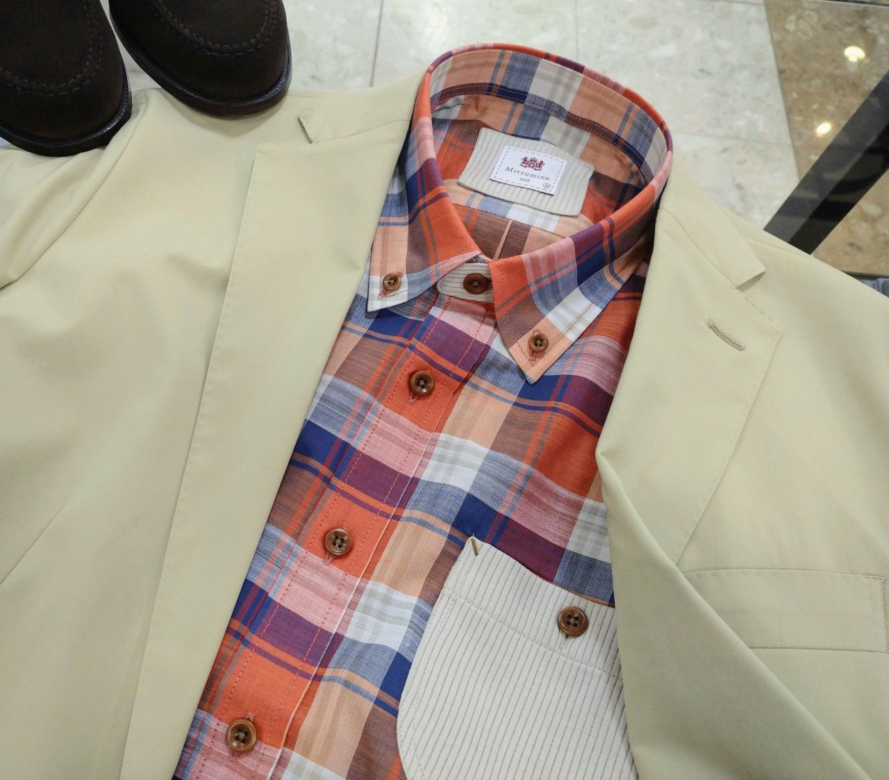 ナチュラルなナットボタンがポイントです。