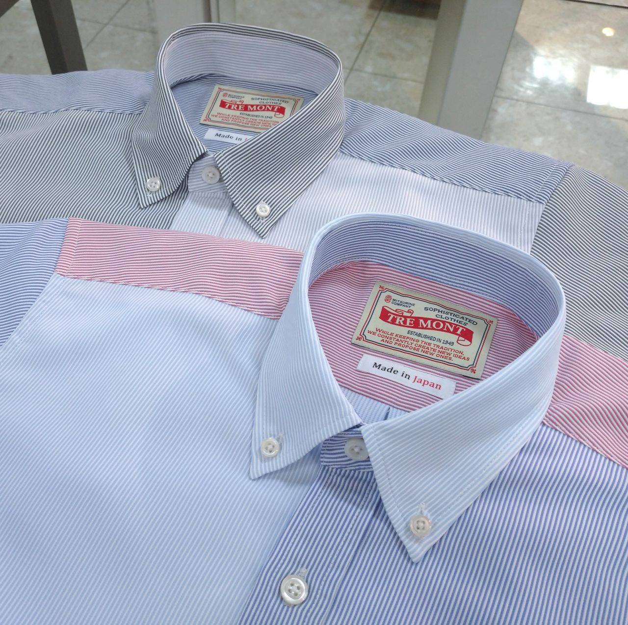 襟はシンプルなボタンダウンです。