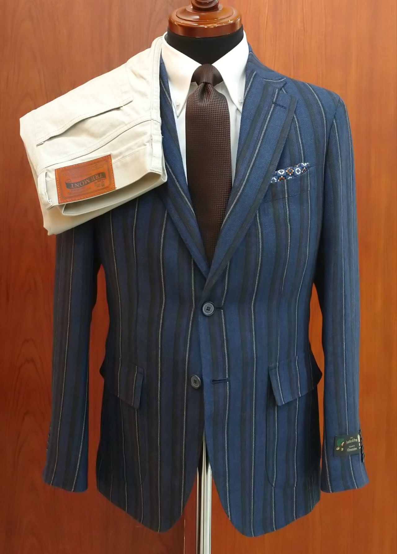 ジャケットにブラウンのストライプが入っているので、