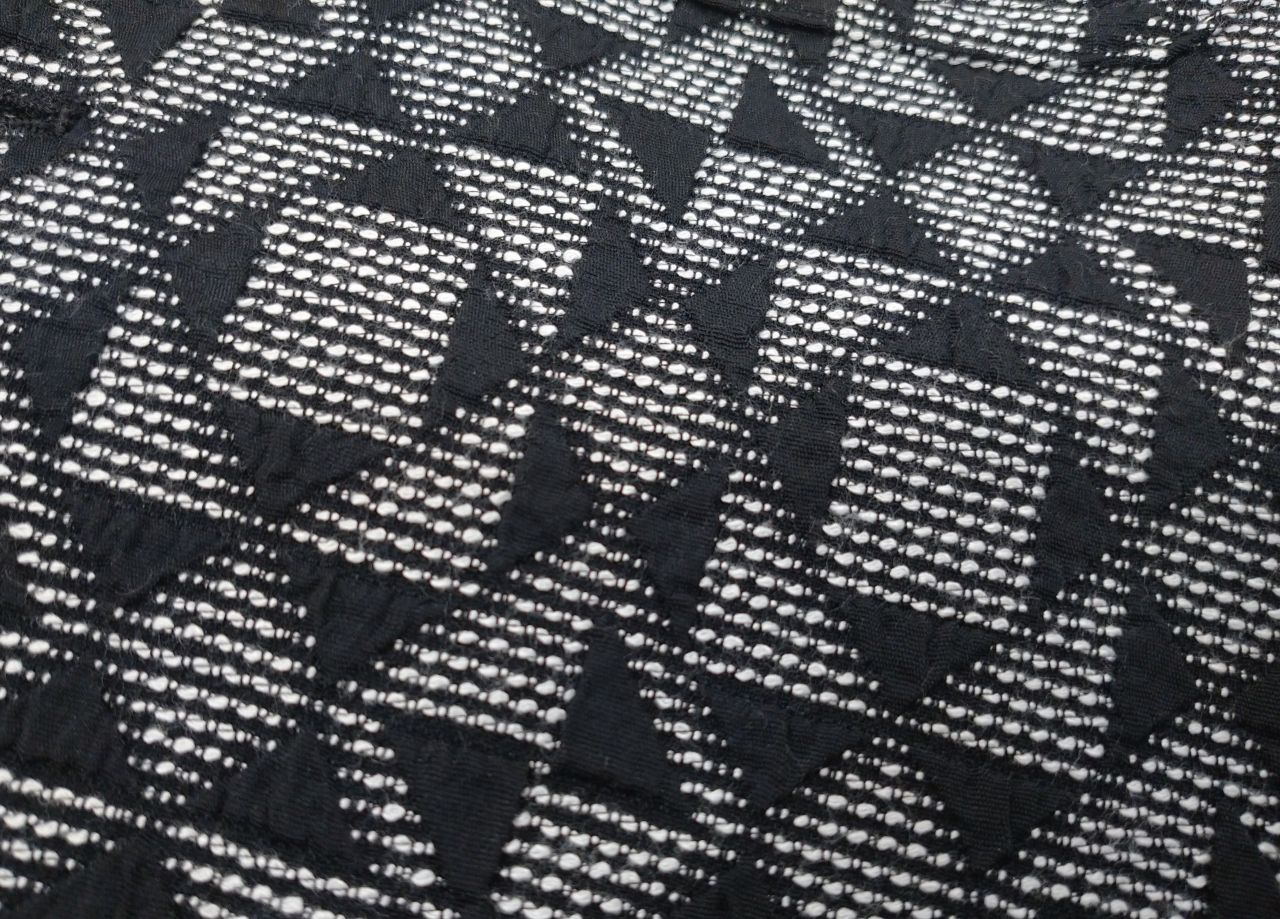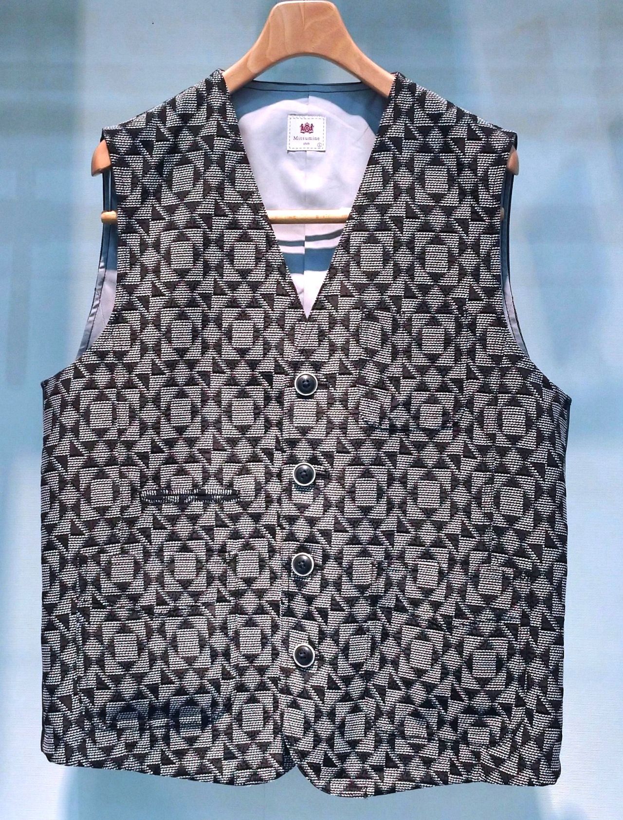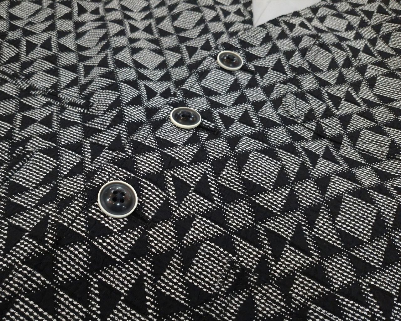 三角のジャガード柄が特徴的なアウターベストです。