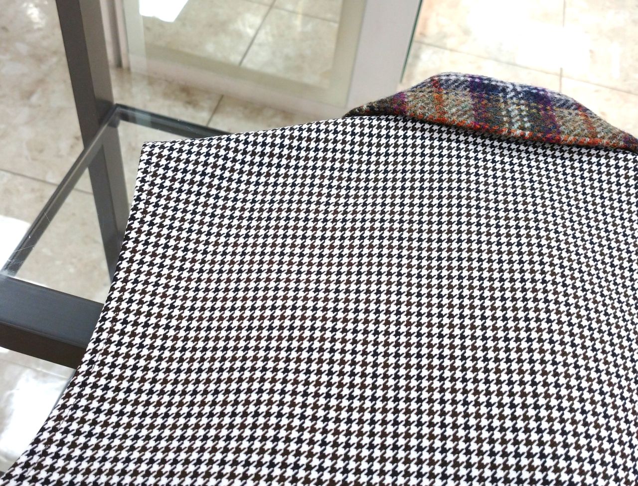 背中側は、ホワイトベースにブラウンとブラックの千鳥柄で、