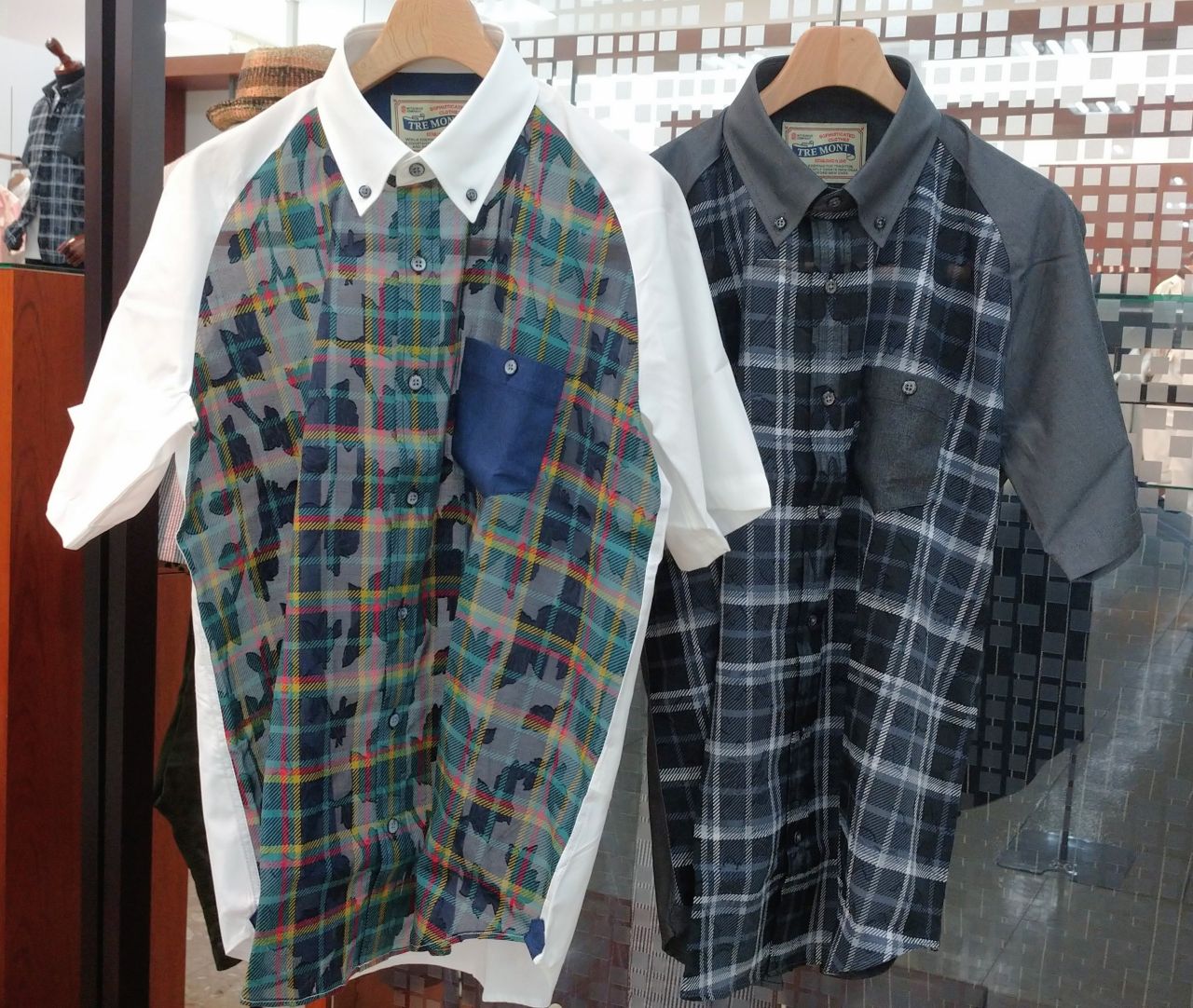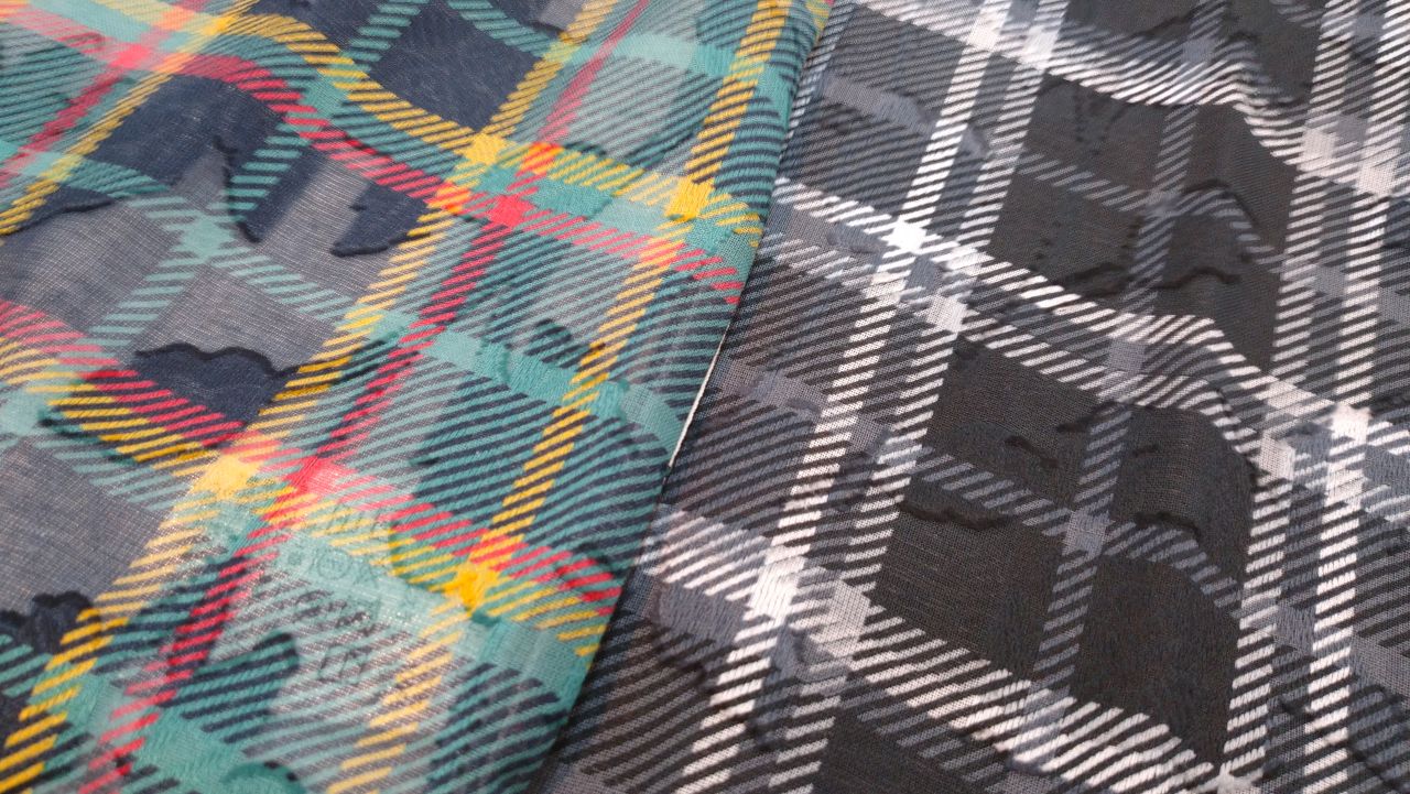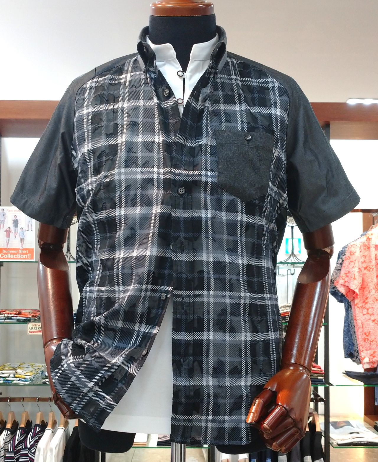 花柄のジャガードに、チェック柄を重ねた生地が印象的な半袖カジュアルシャツです♪