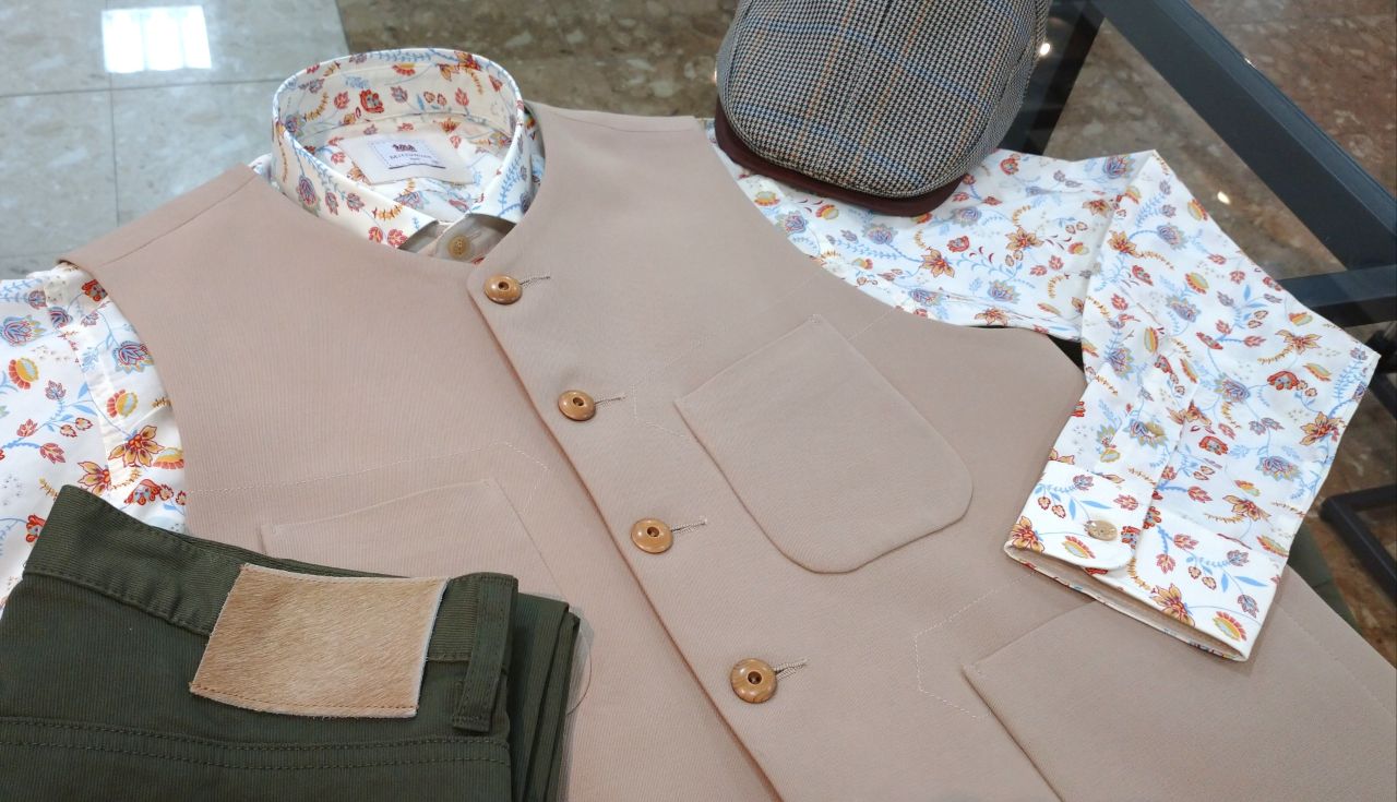 更紗柄のプリントシャツを合わせ、明るい印象にまとめてみました!