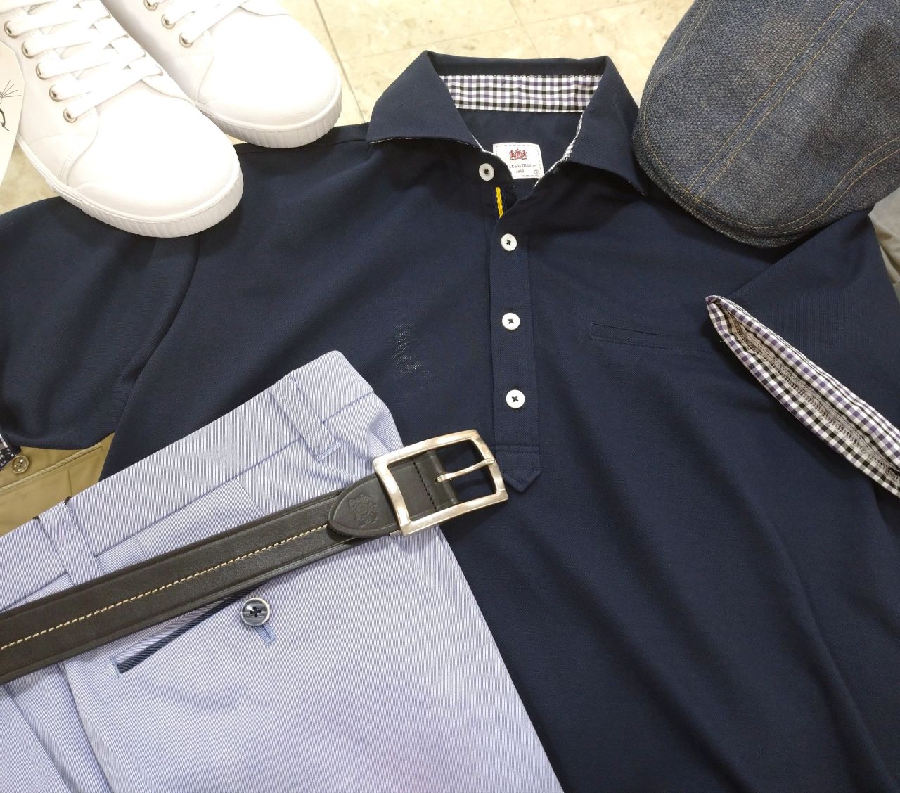 ポロシャツの袖口を折らずに着用すれば、シンプルな見た目になり