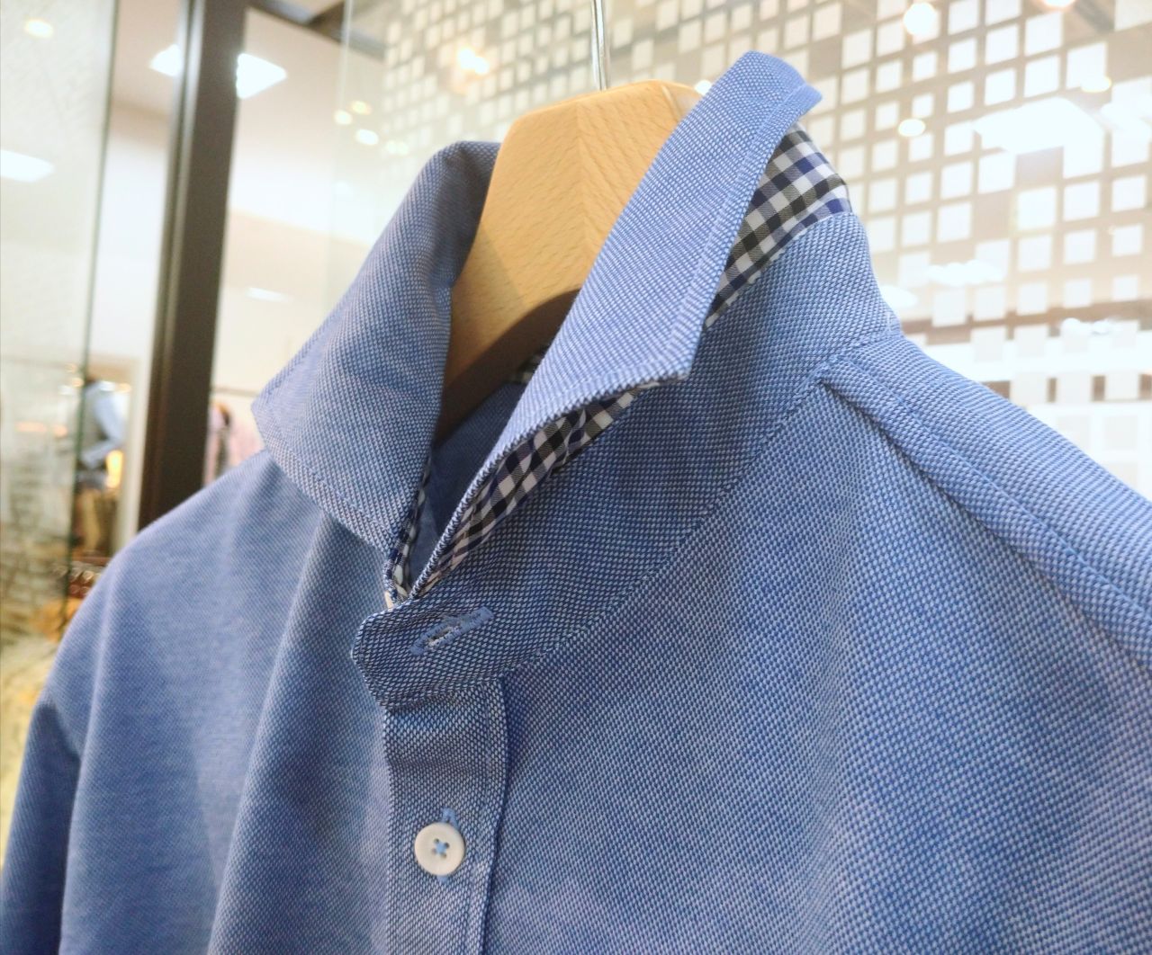襟裏や袖口のギンガムチェックの別布がポイントです。