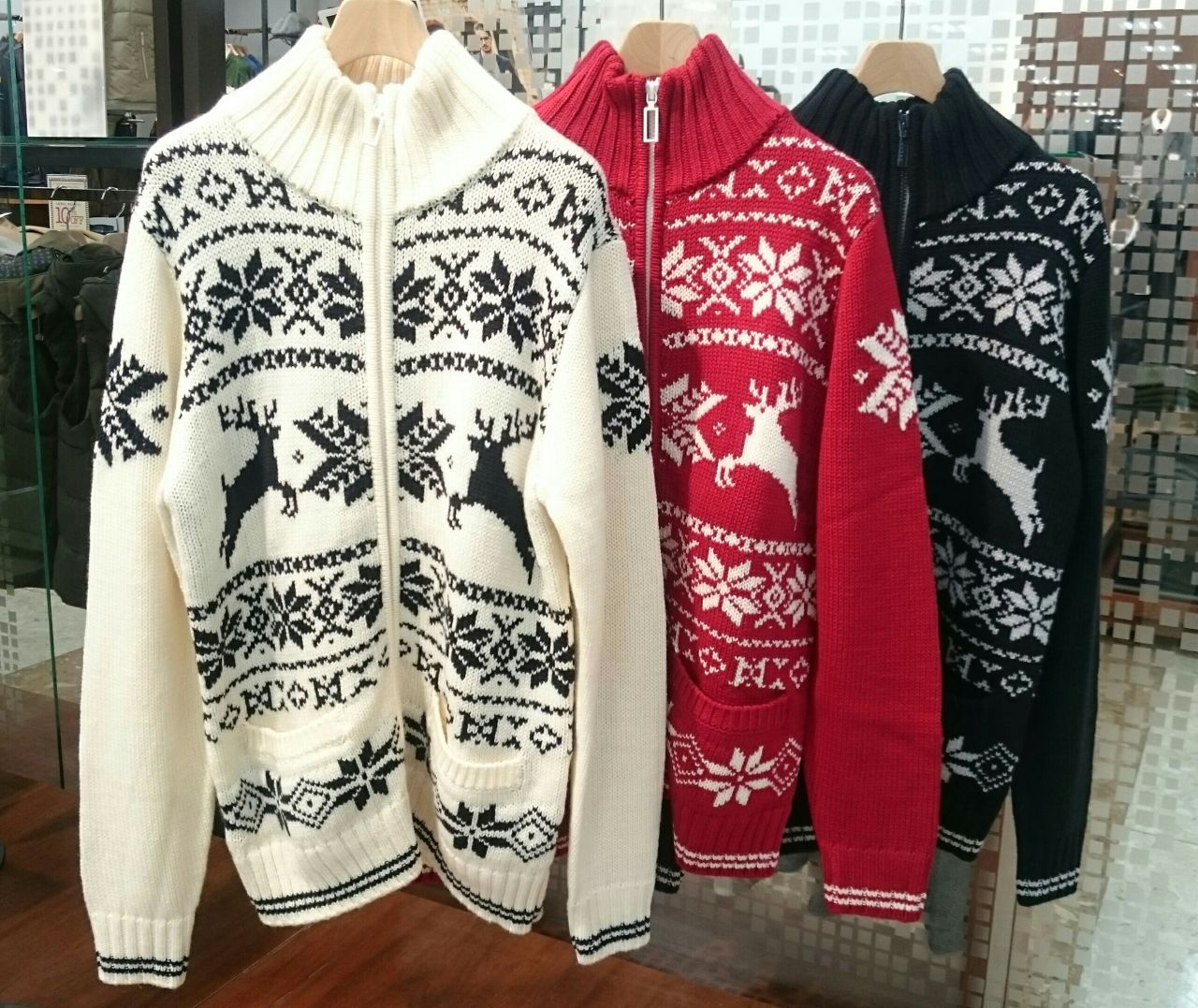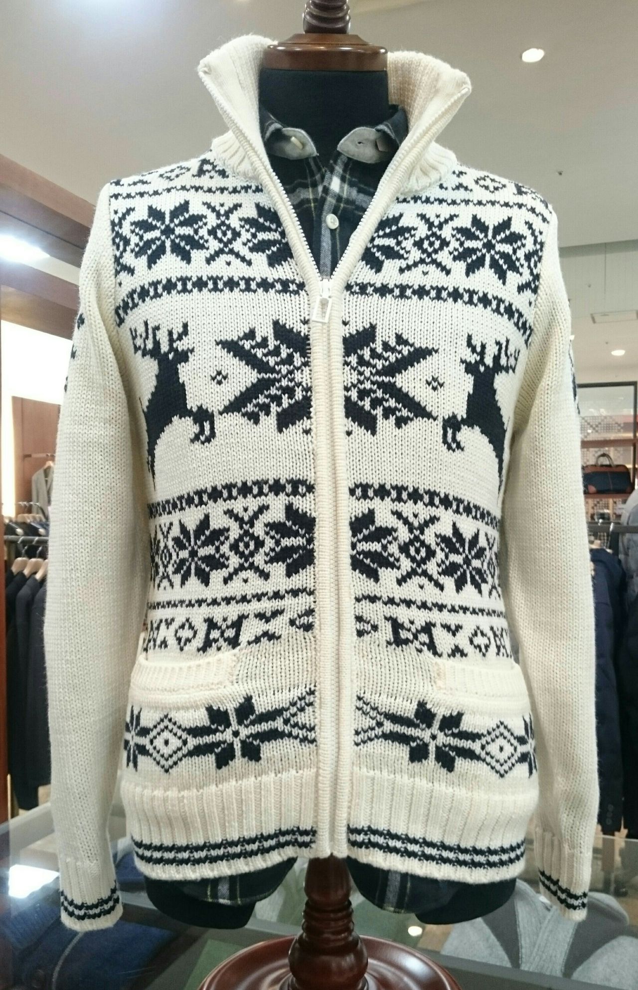 トナカイジャガードジップニット