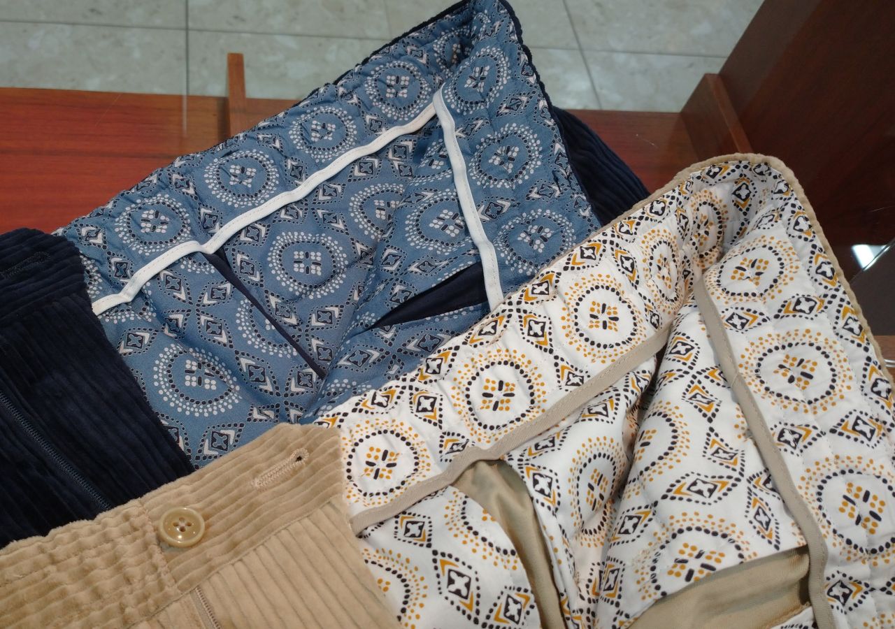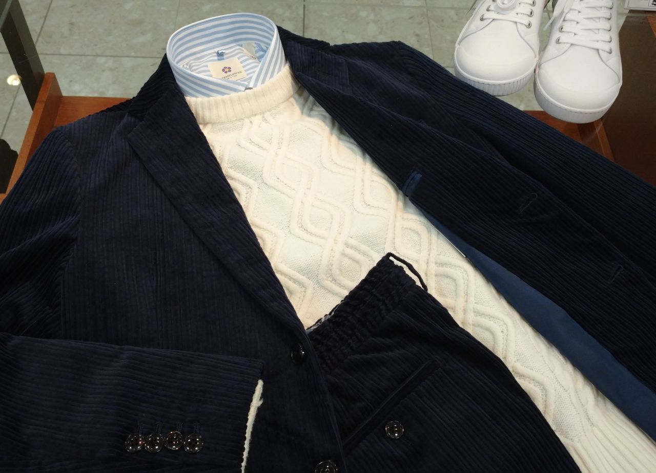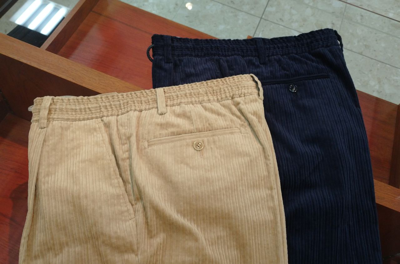 以前ご紹介した親子コールのジャケットと同じ生地を使用したパンツが入荷しましたので、